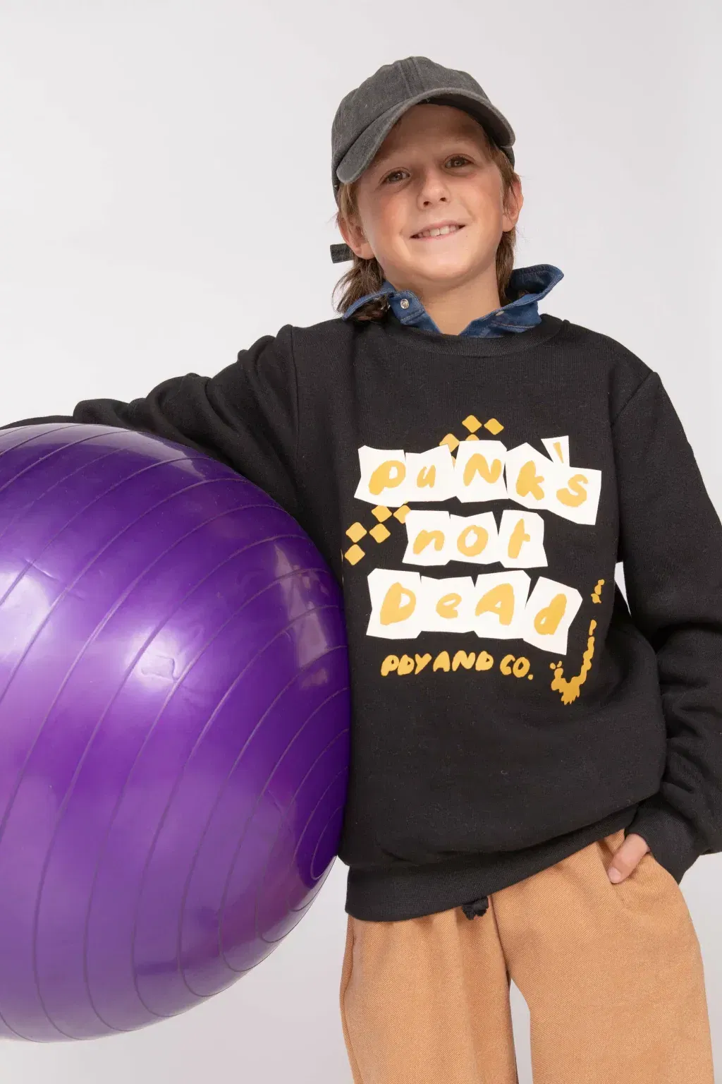 Buzo de Nene cuello a la base con estampa en delantero a 2 colores. Con reeb al tono en cuello, cintura y puños.