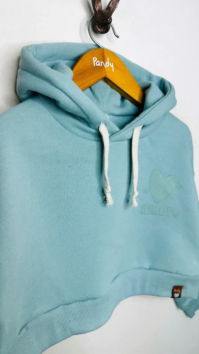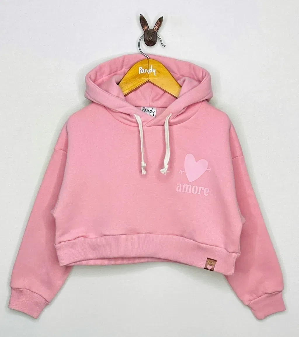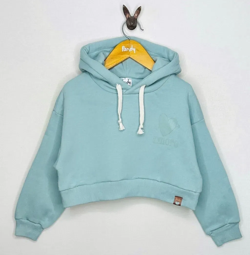 Buzo de nena corto de frisa algodón/polyester lisa color con capucha y estampa en delantero a un color, monocolor.
