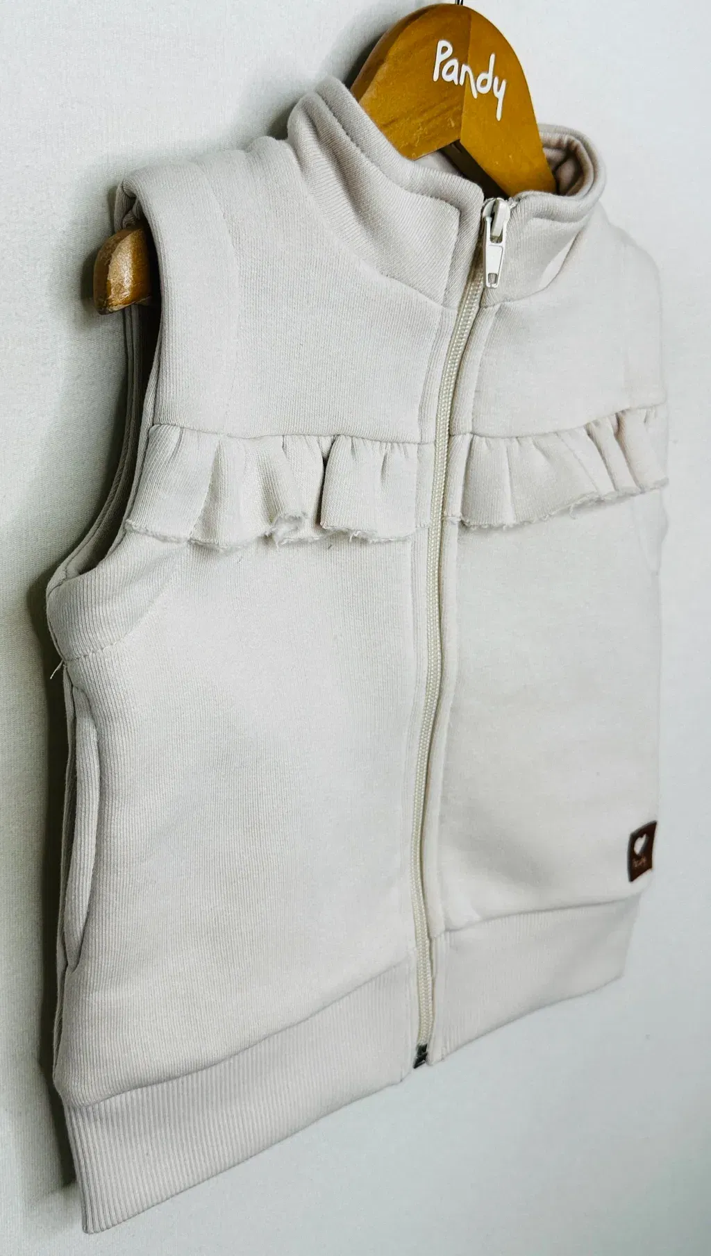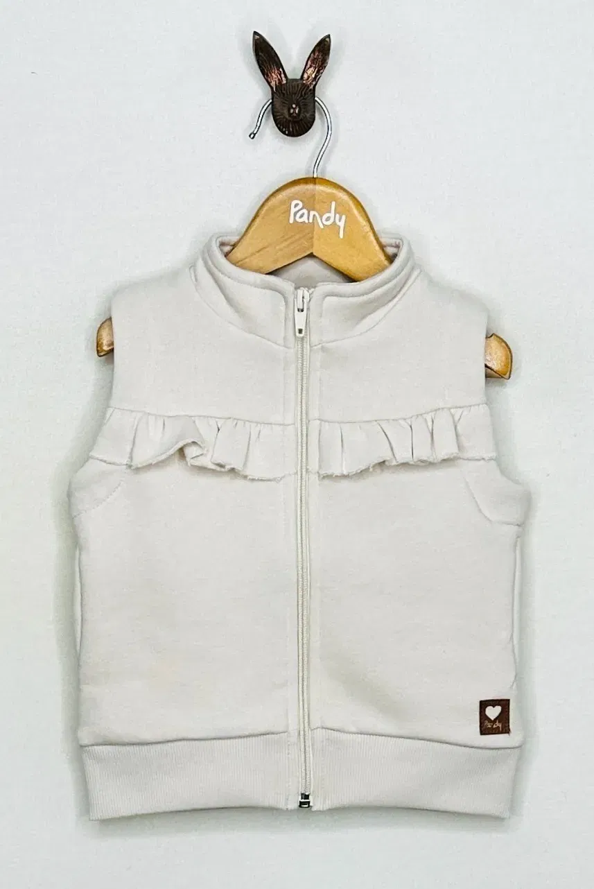 Chaleco de Frisa de algodón/polyester cuello polera con volado frontal.