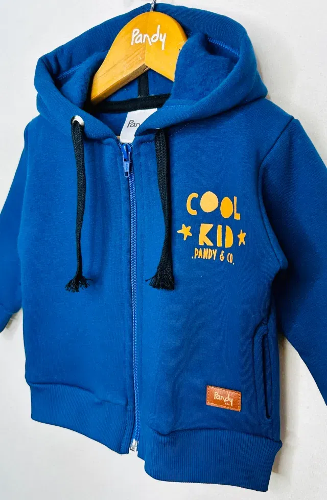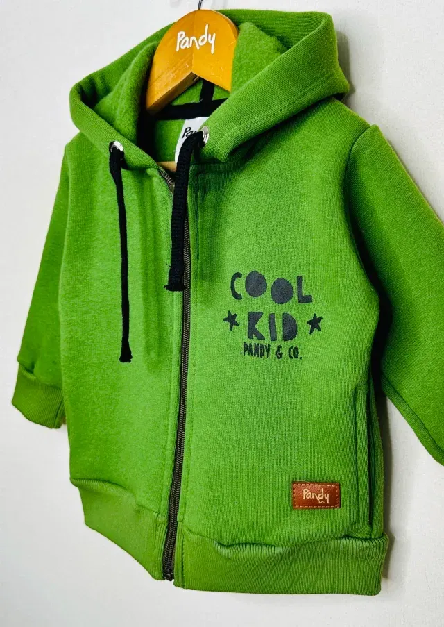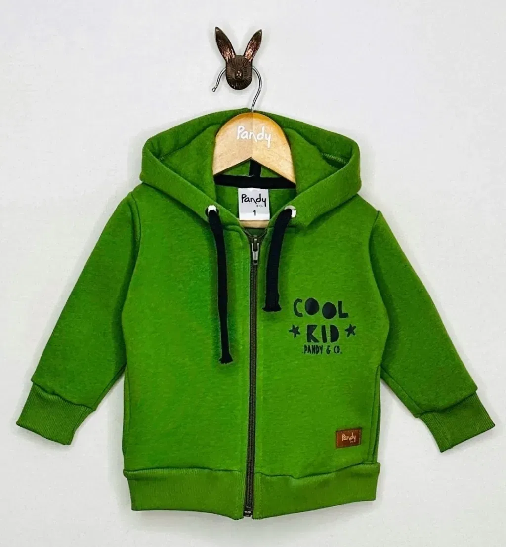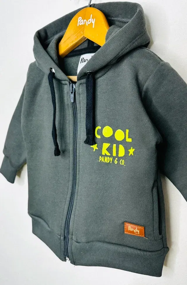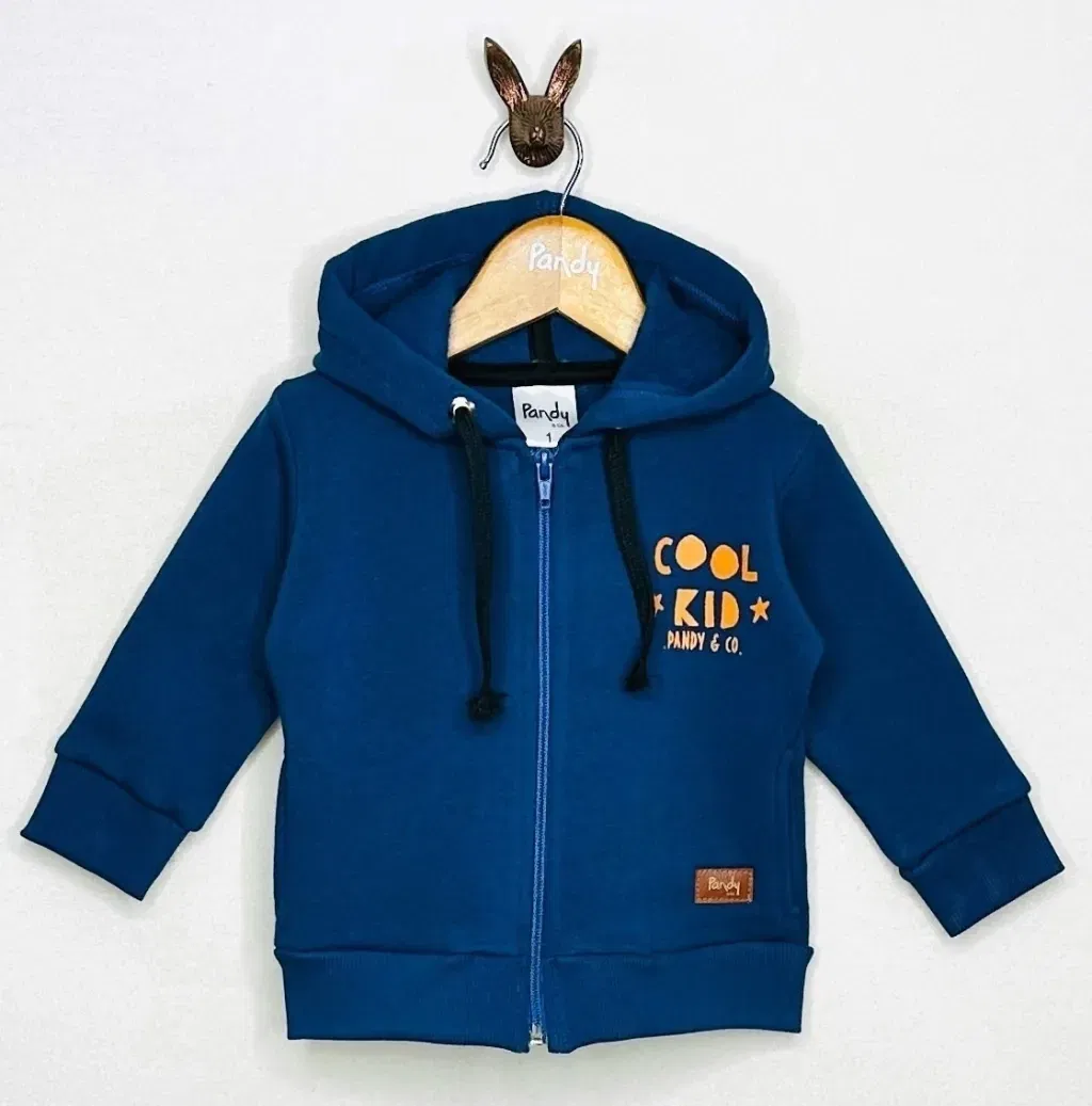 Campera Bebe con capucha y cierre, de frisa algodon/polyester, con estampa en delantero a un color.