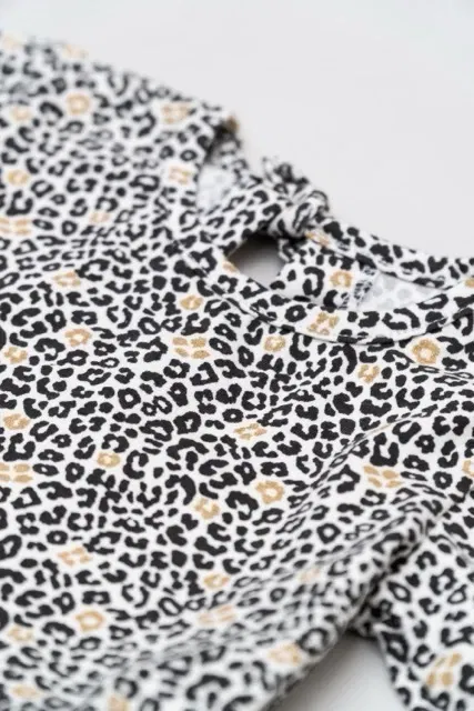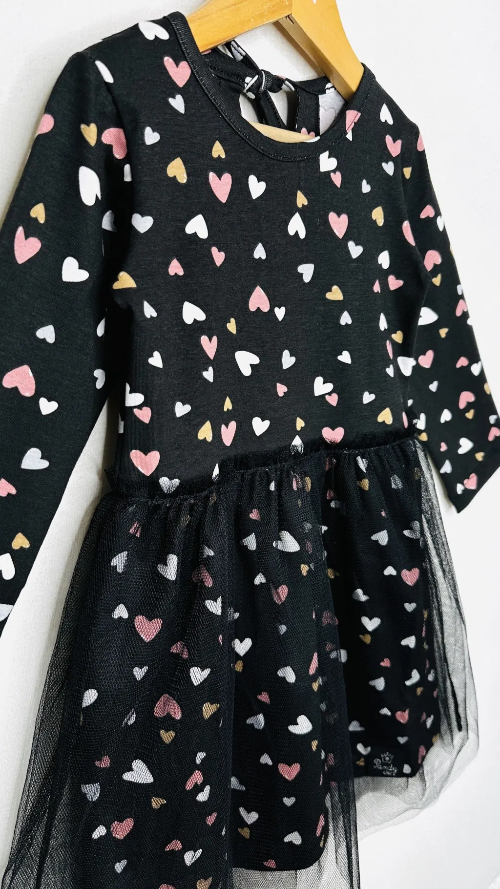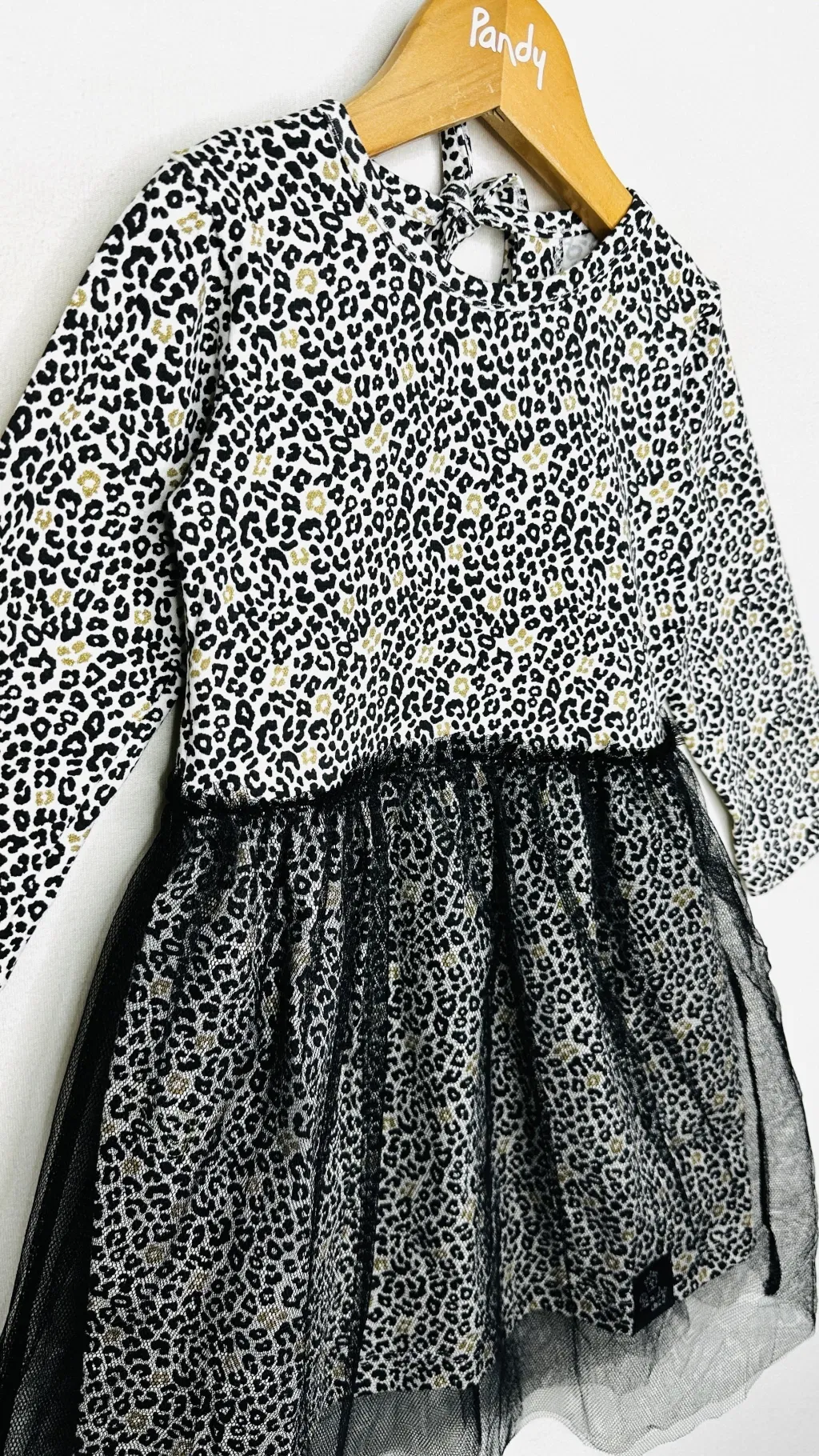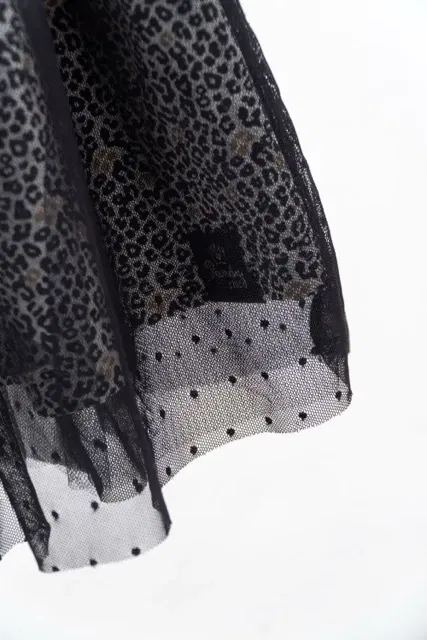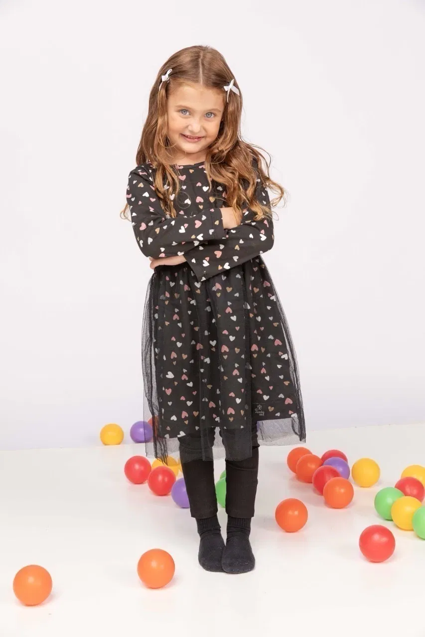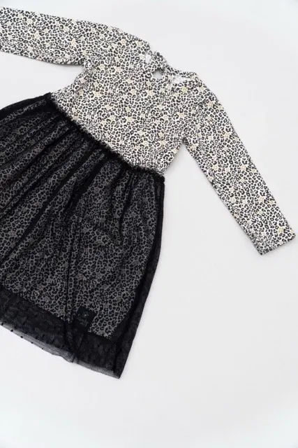 Vestido de modal estampado con manga larga y doble falda de tul con frunce.