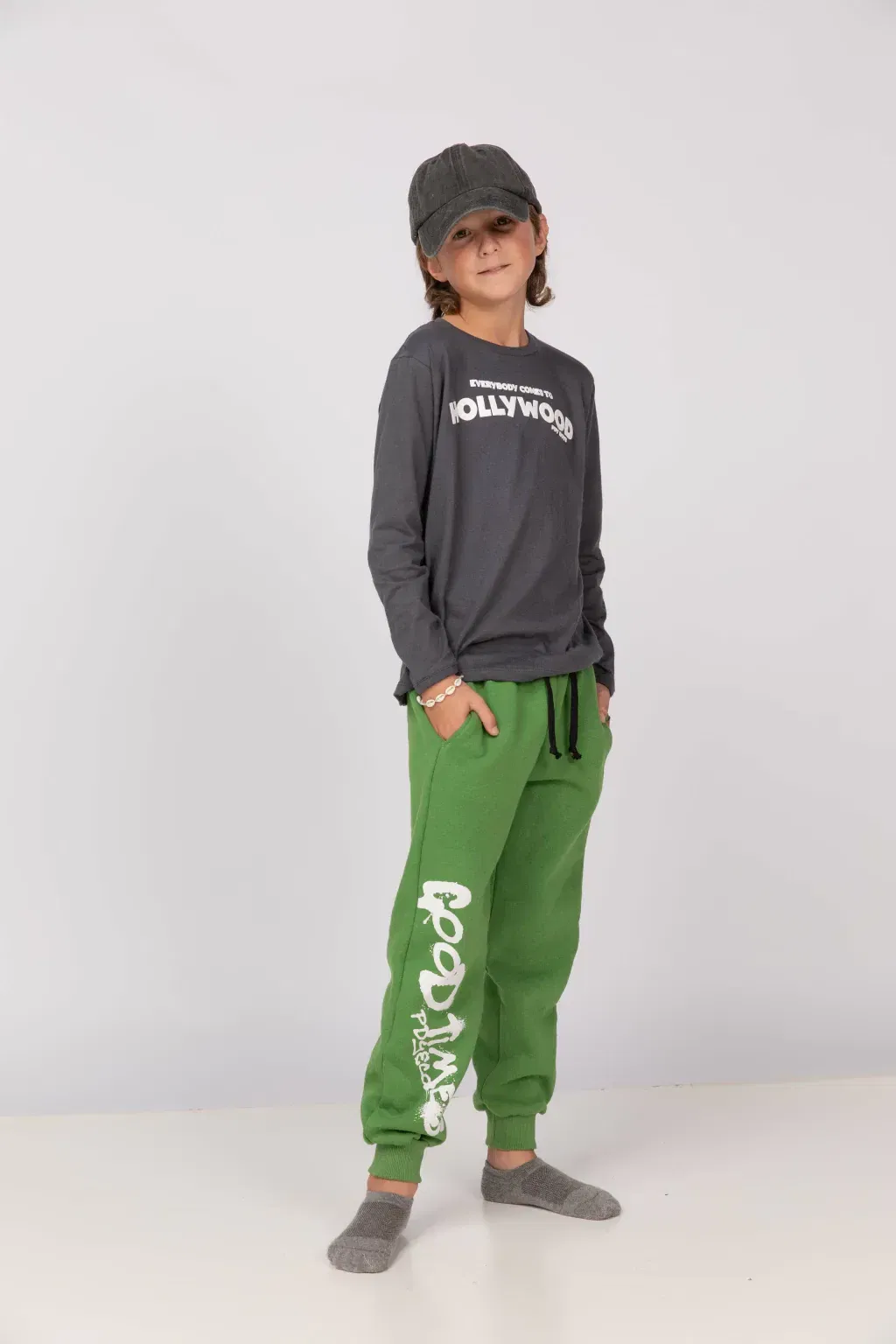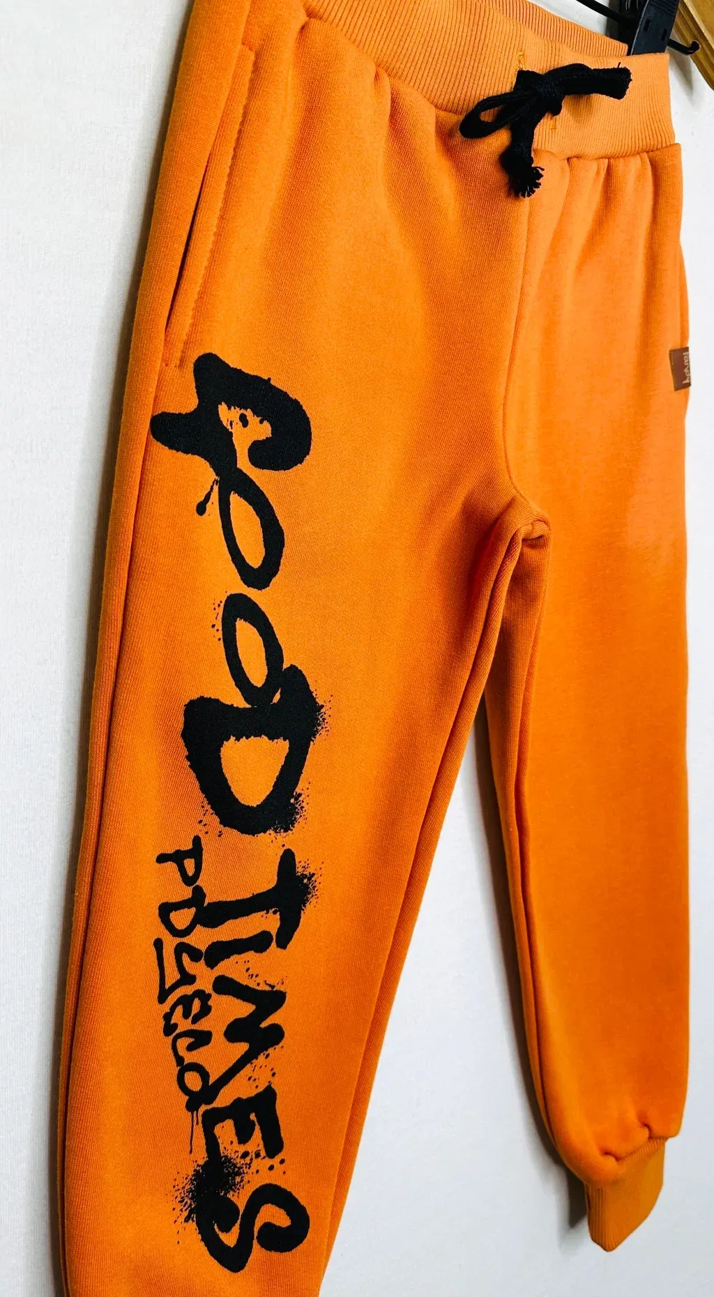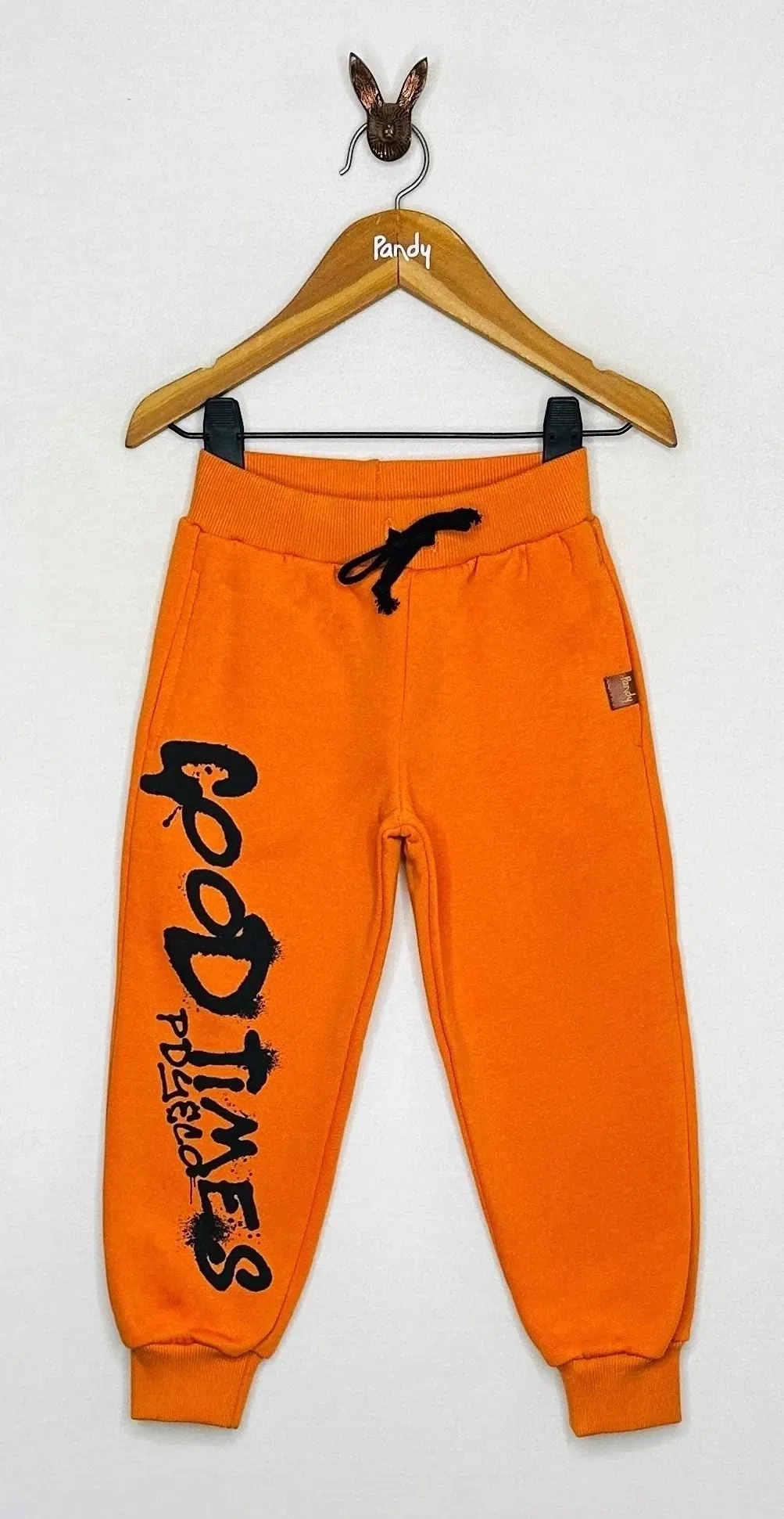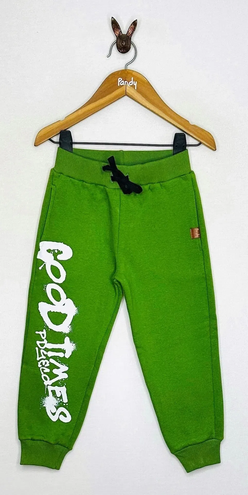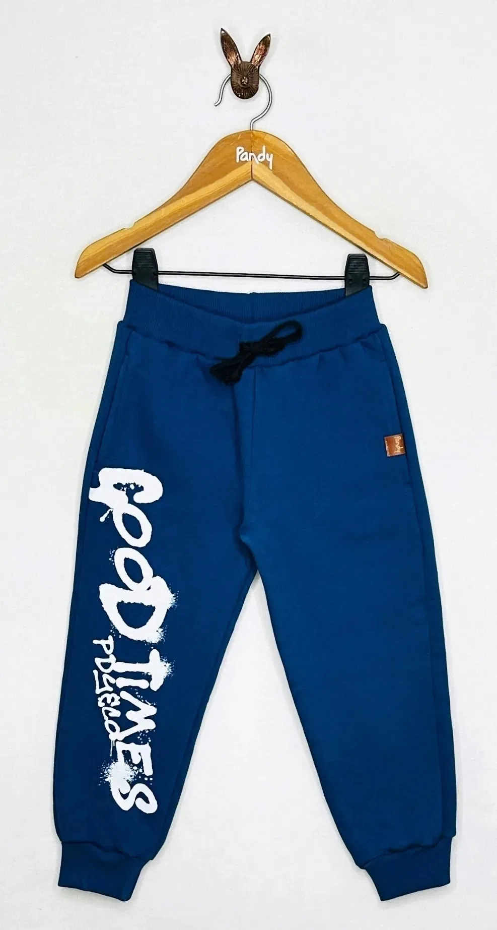 Pantalón tipo Jogger de Frisa de algodón/polyester. Estampa en delantero a 1 color, con puños de reeb al tono en cintura y pierna, con cordones regulables de algodón.