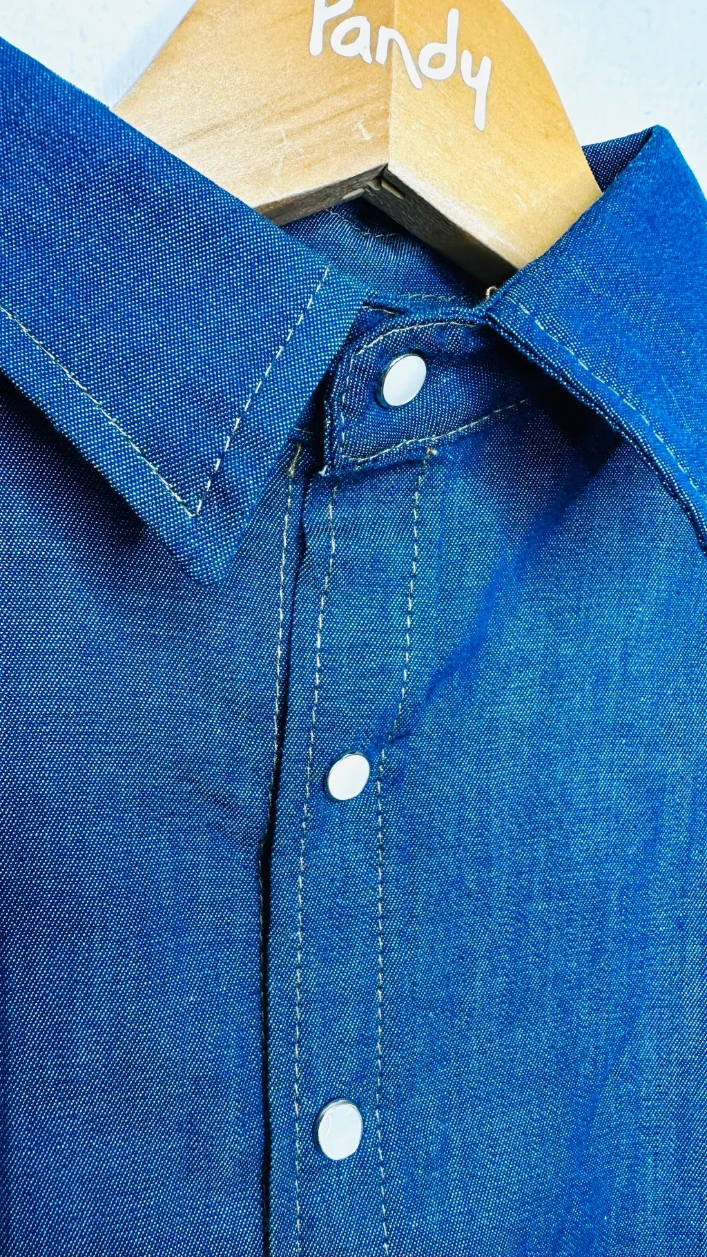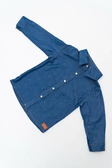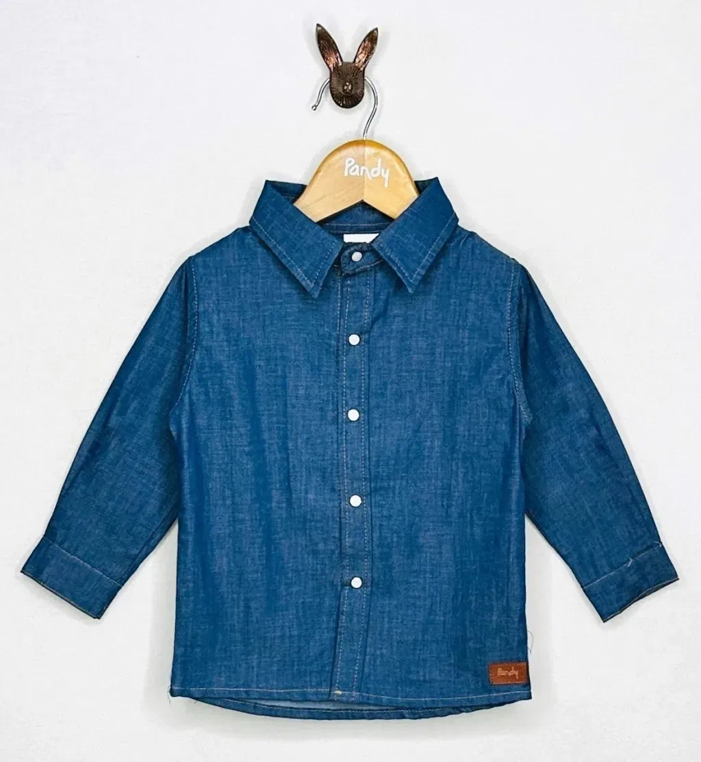 Camisa de denim liviano con broches nacarados a presion.