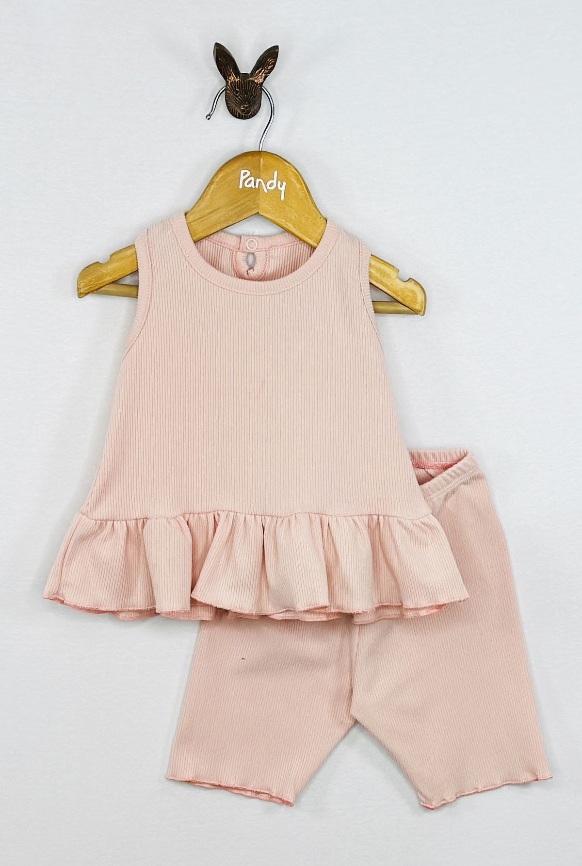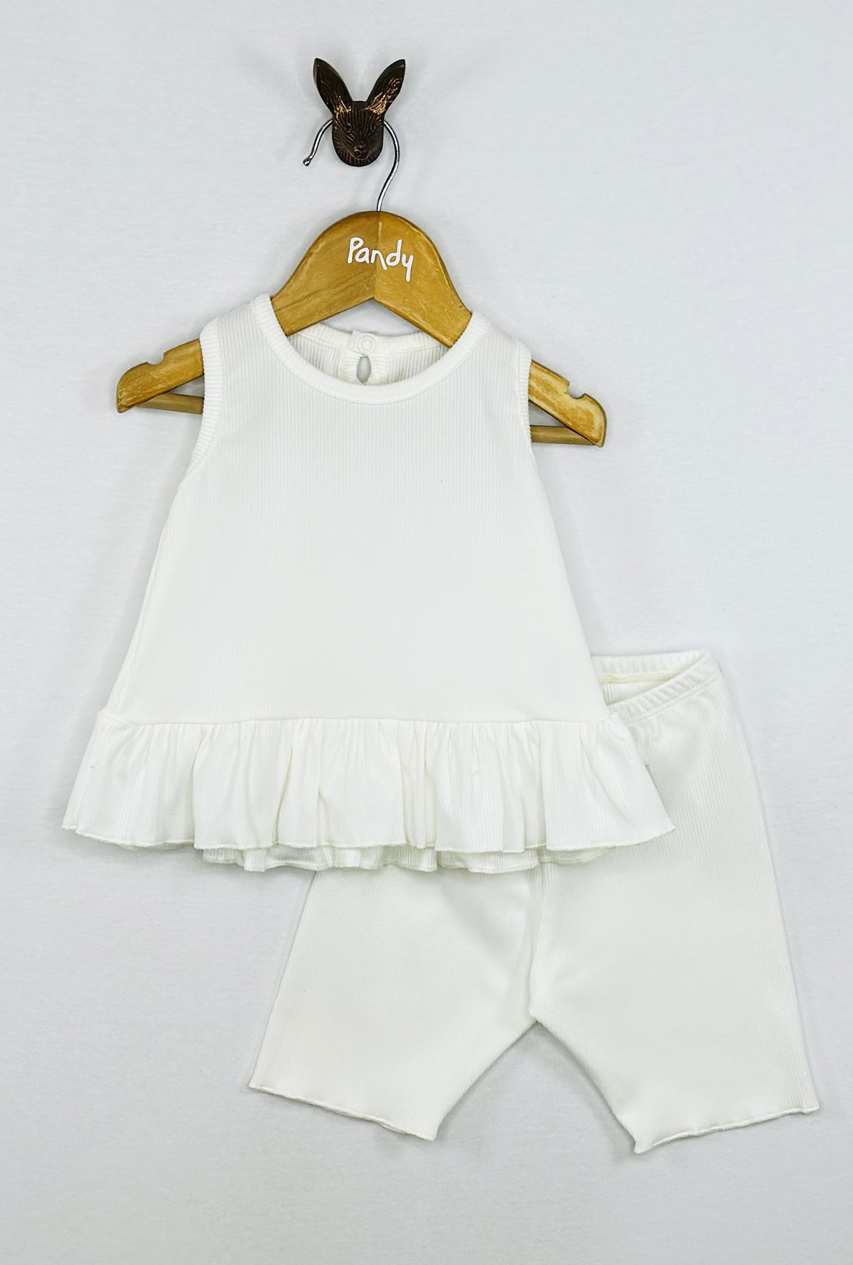 Conjunto beba morley listo, Remera con volado y calza biker.