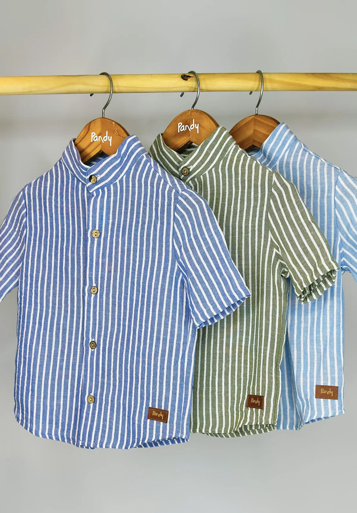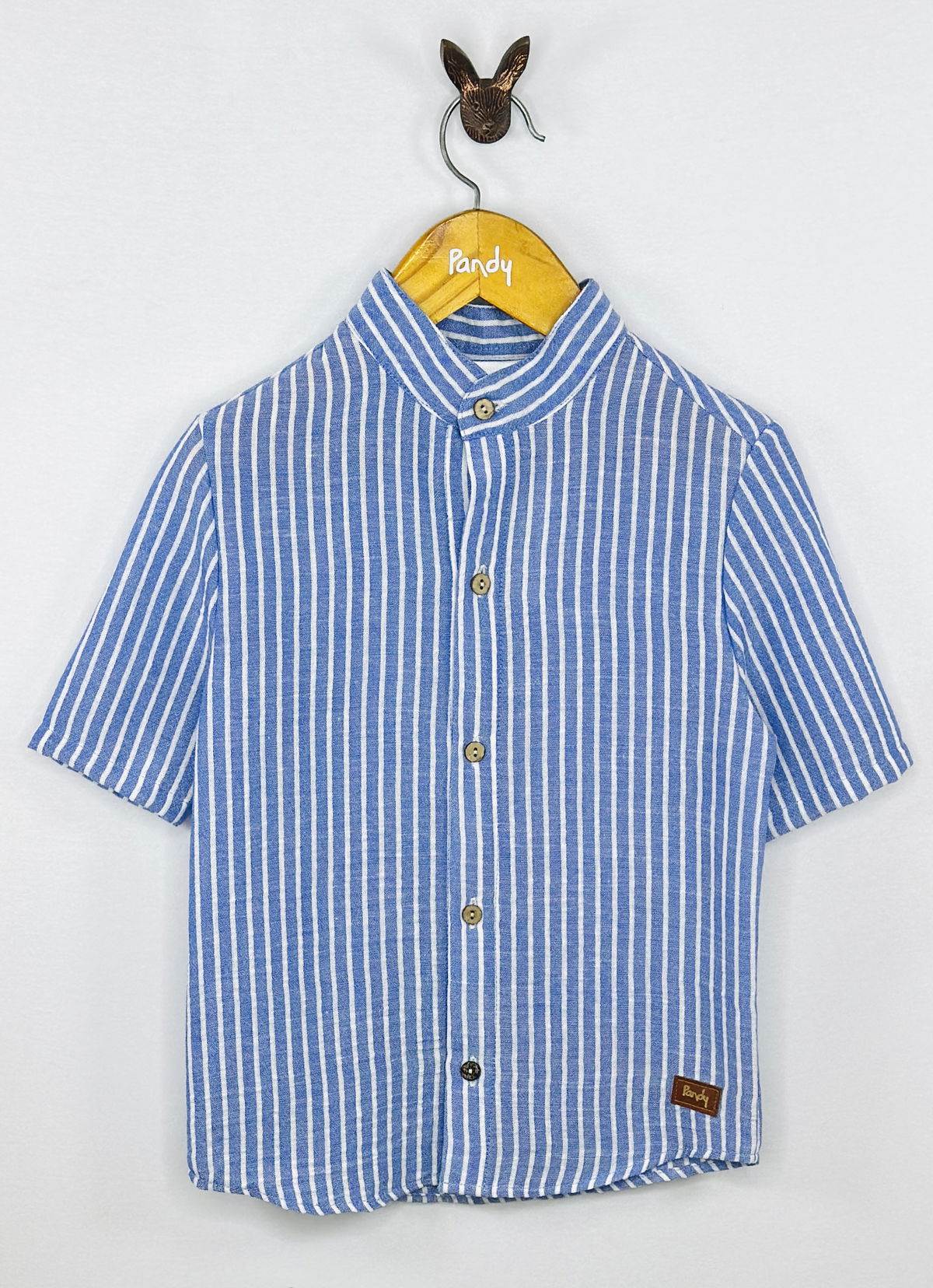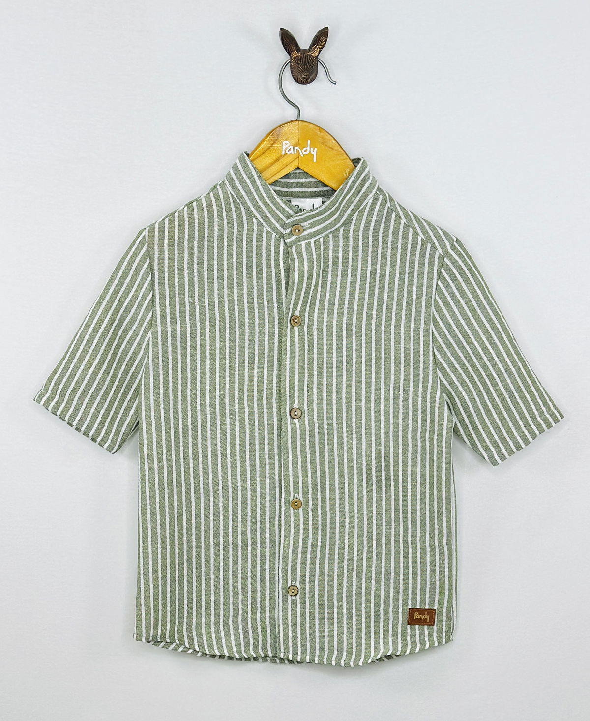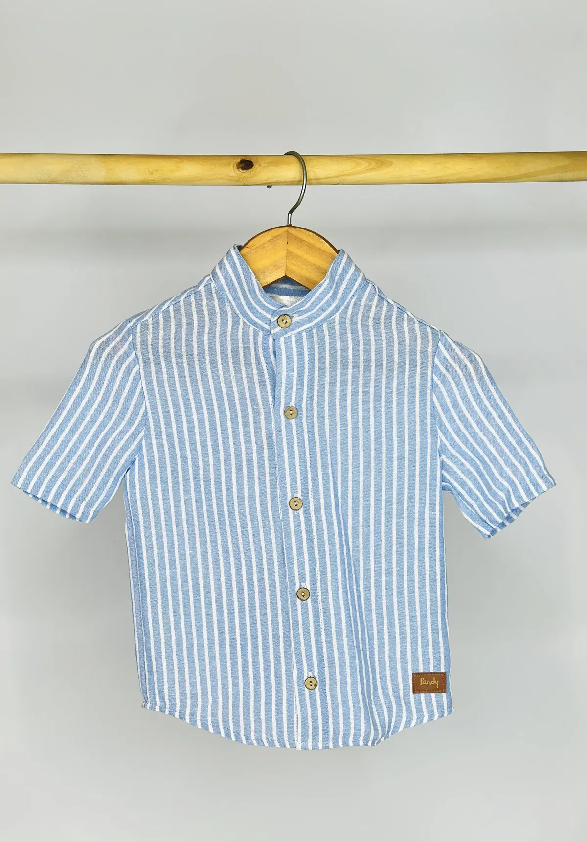 Camisa cuello Mao de lino, con botones simil madera.