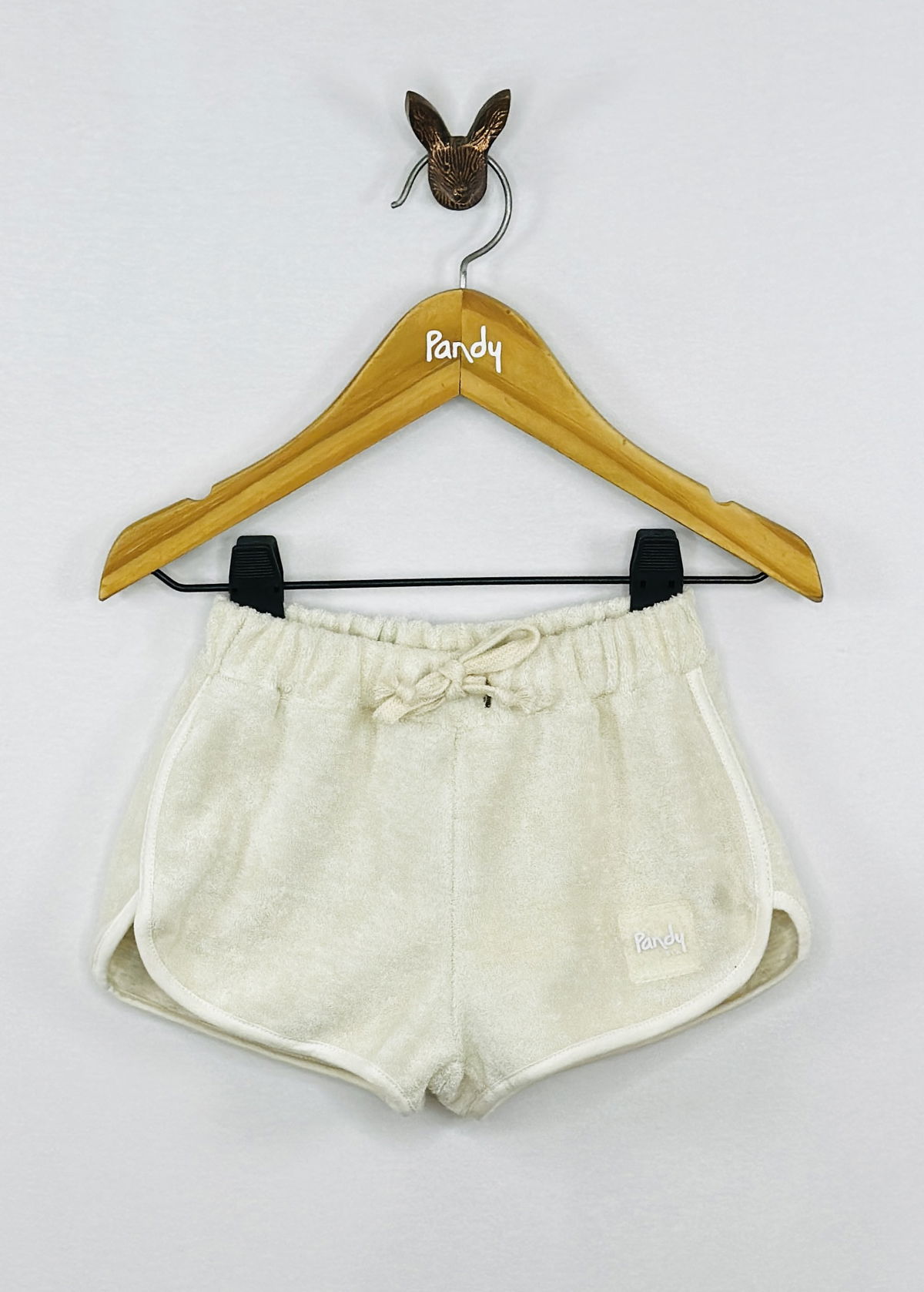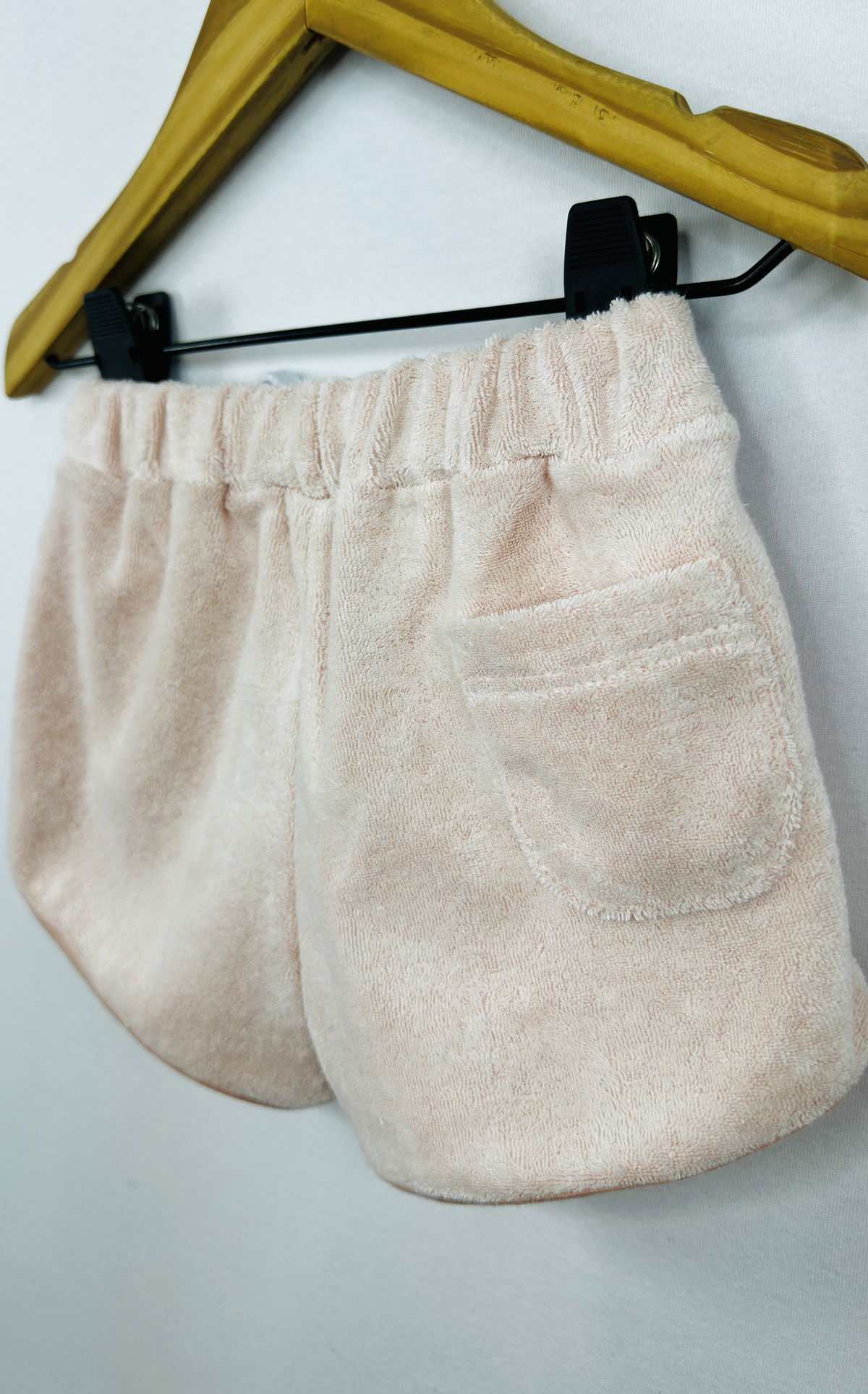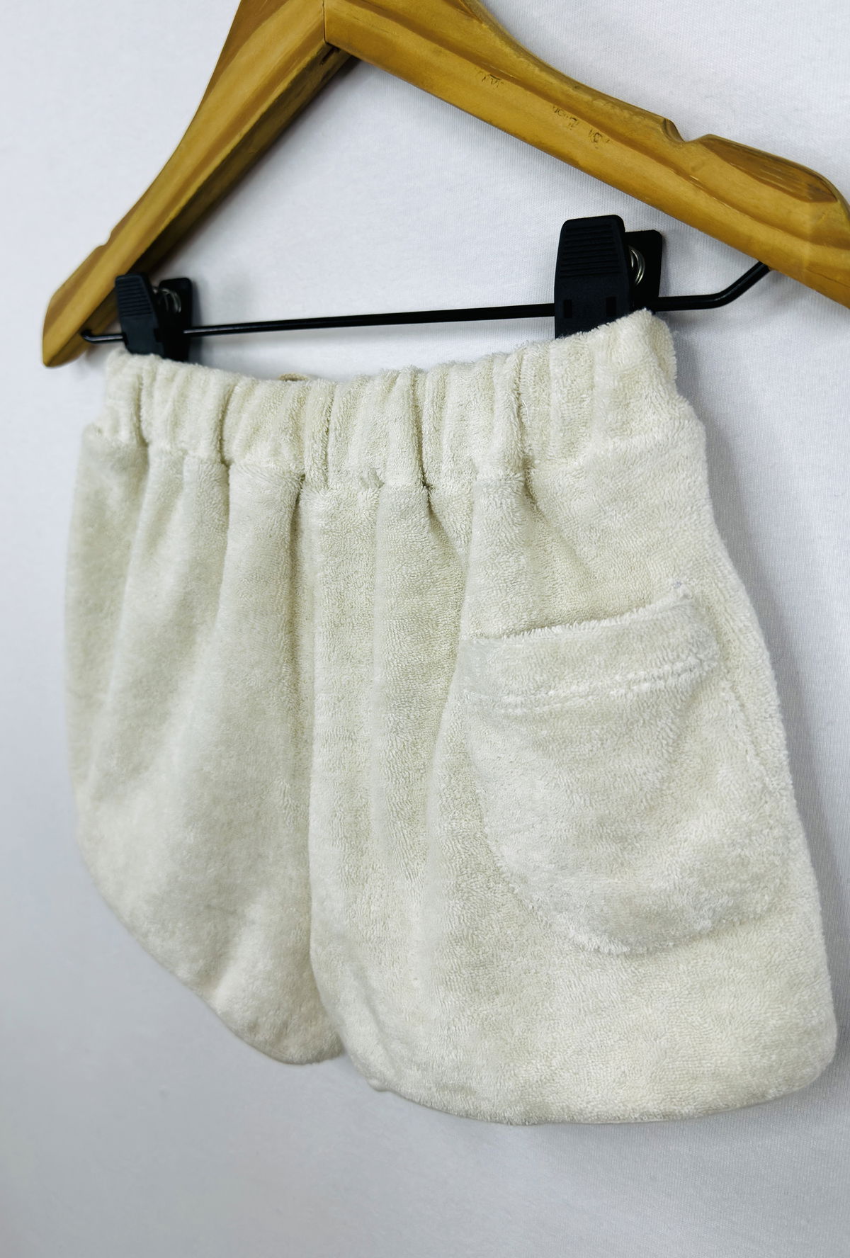 Short nena rustico de towell, bolsillo trasero y cordon.