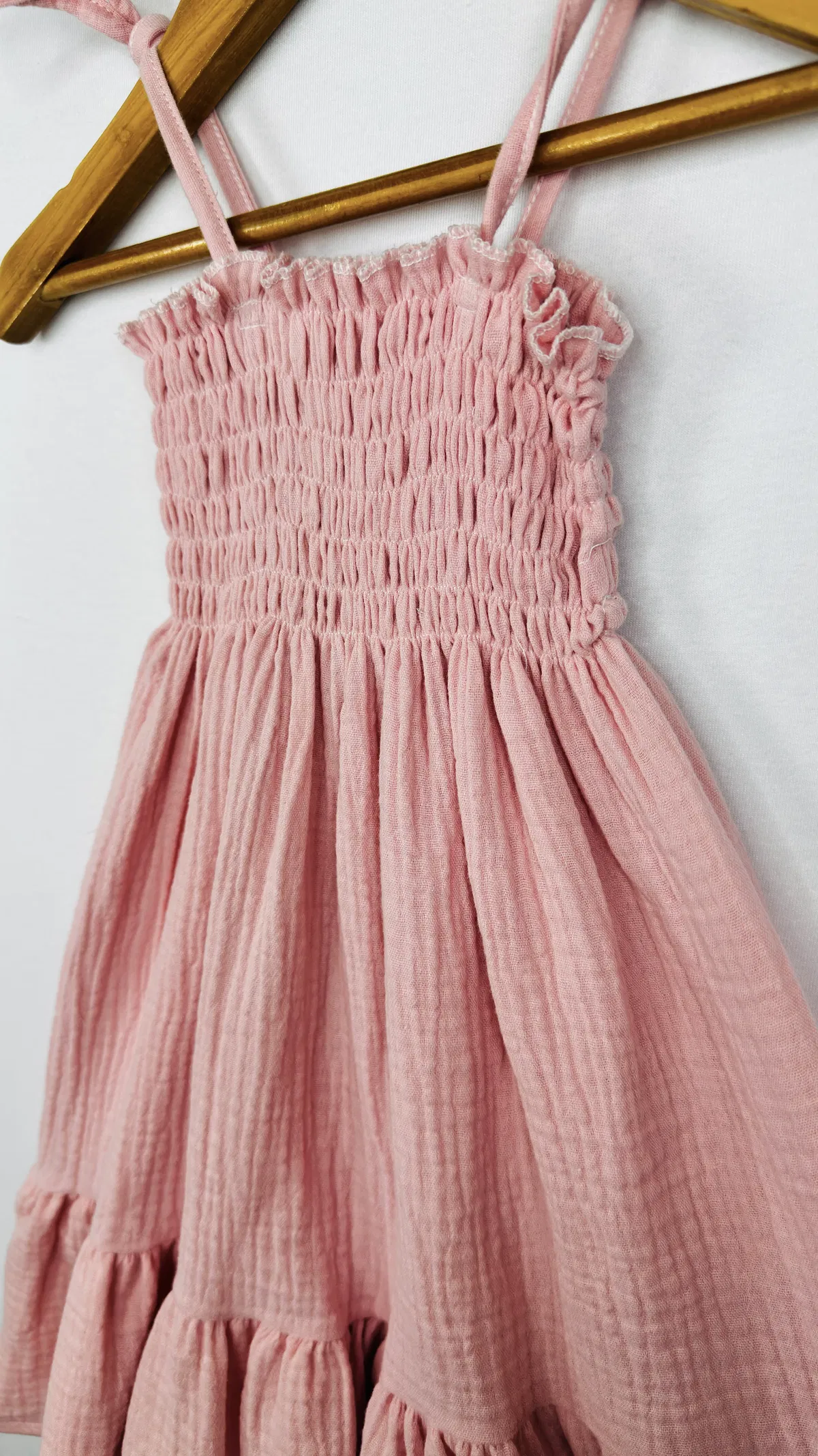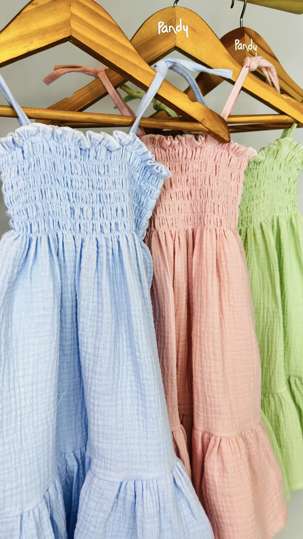 Vestido nena, tela baby cottom bordado, elaztizado con tiras y volado.