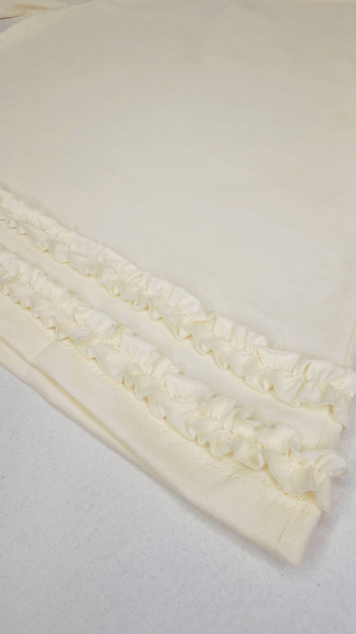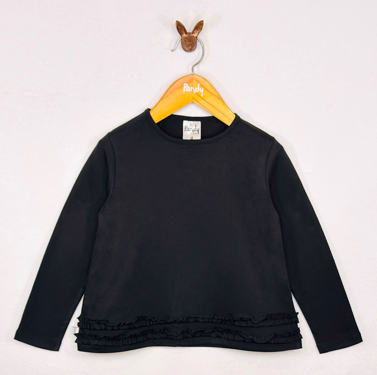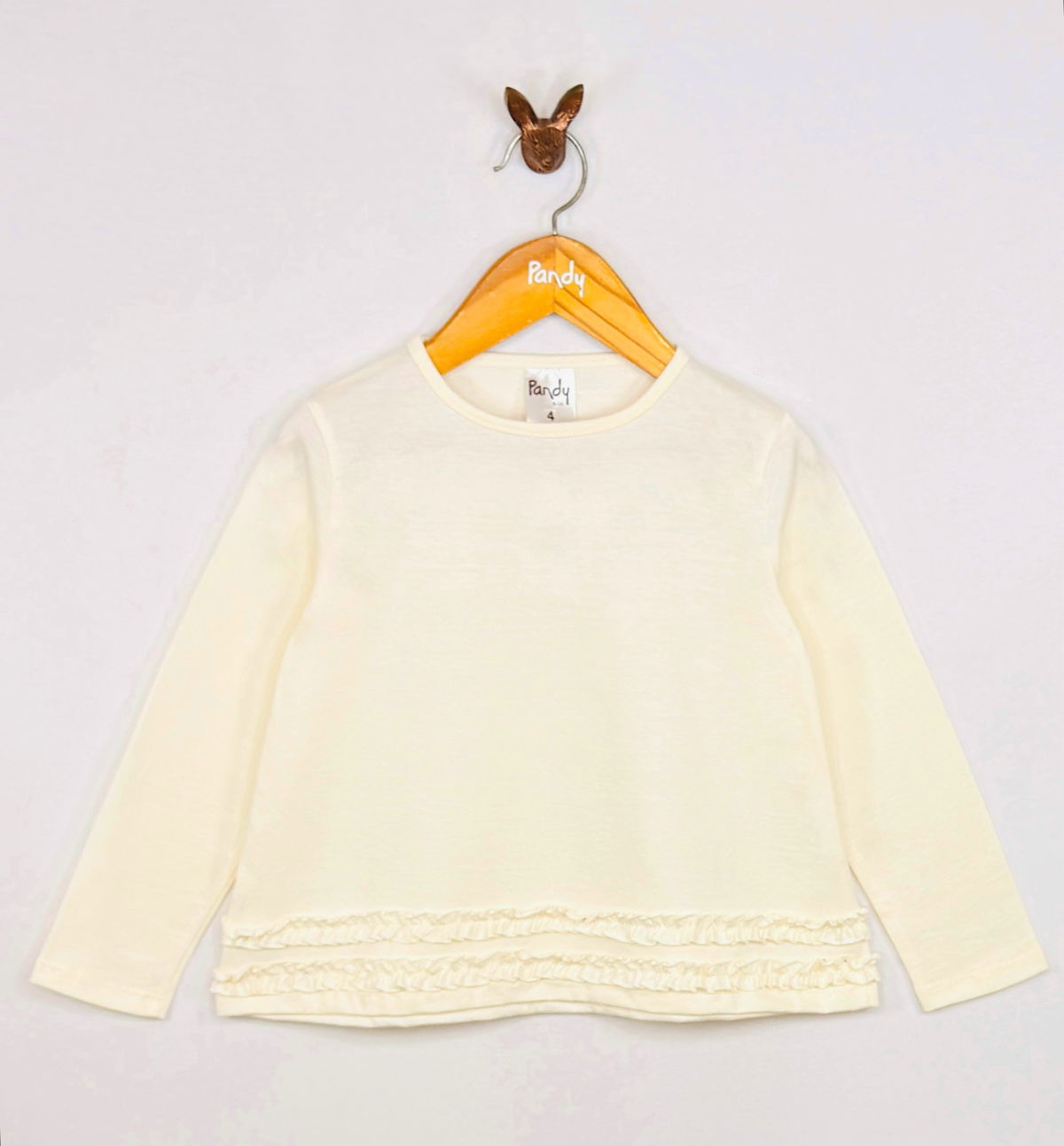 Corte acampanado con aplique de voladitos croqui de la misma tela.