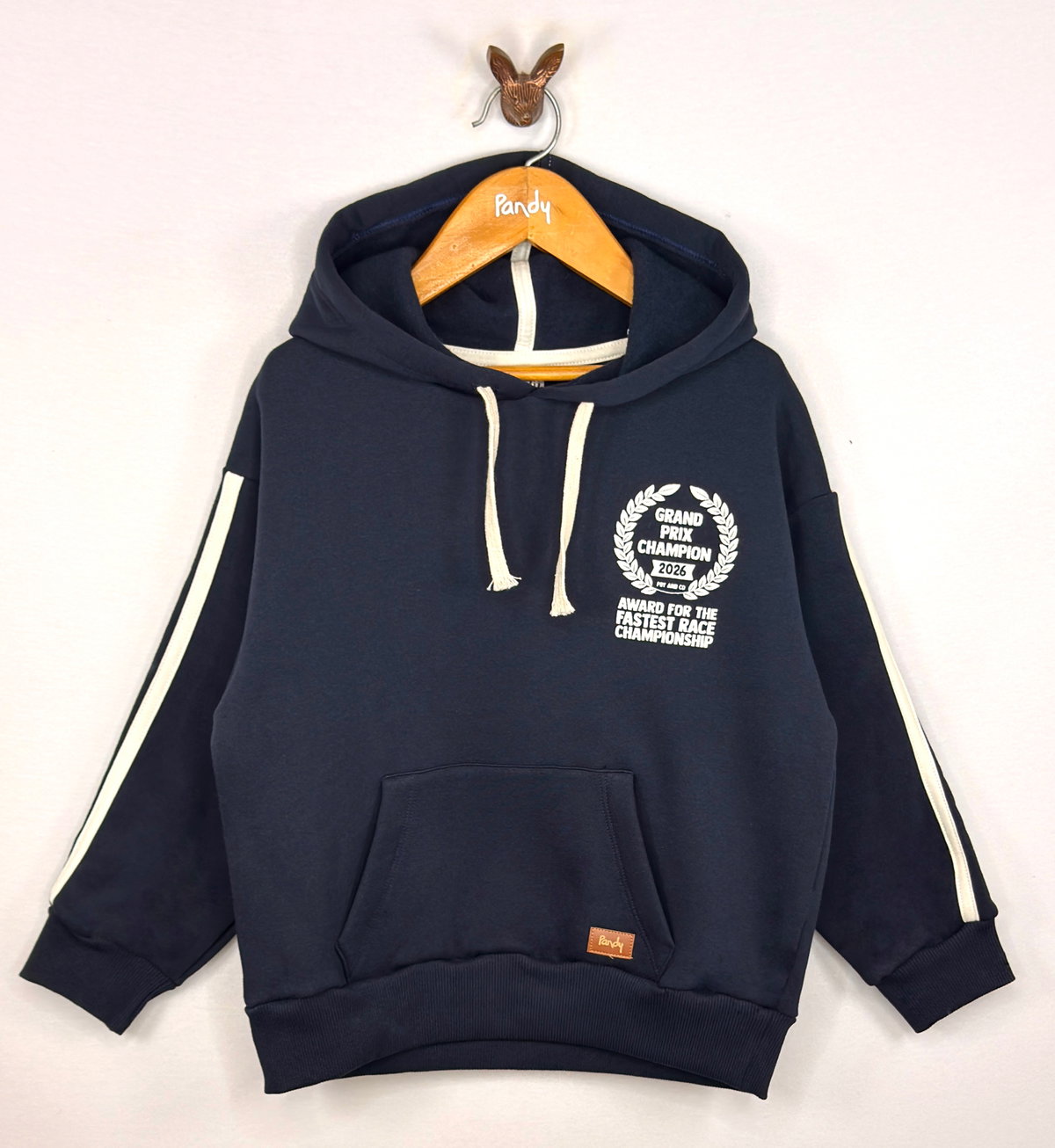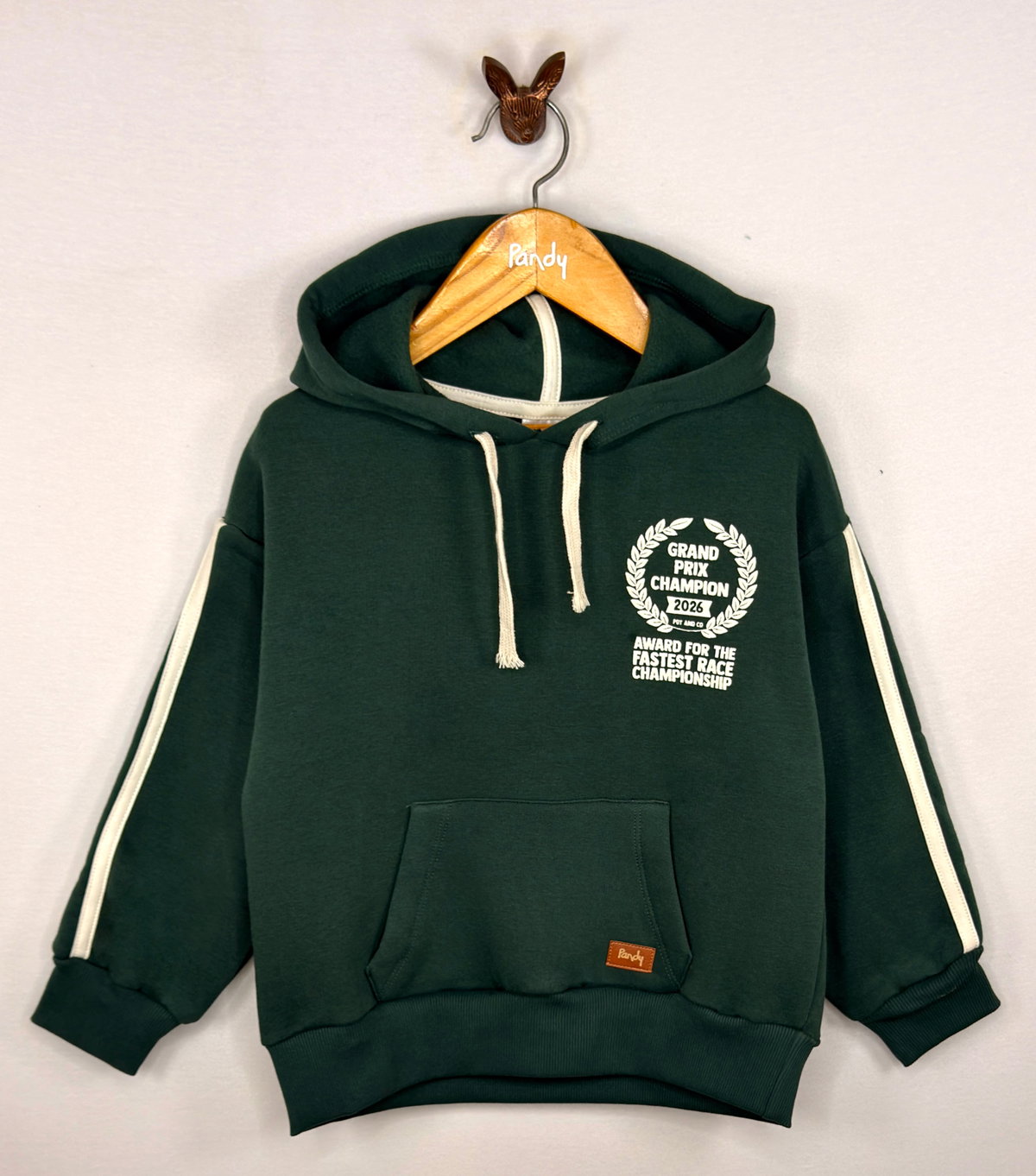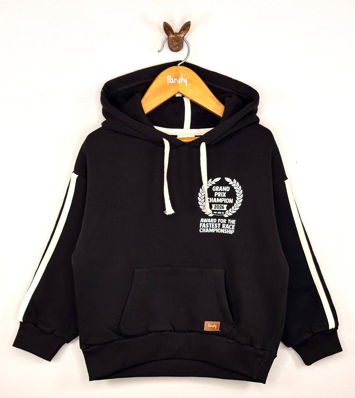 Corte OVERSIZE con capucha, bolsillo canguro y doble tira contratono en mangas.