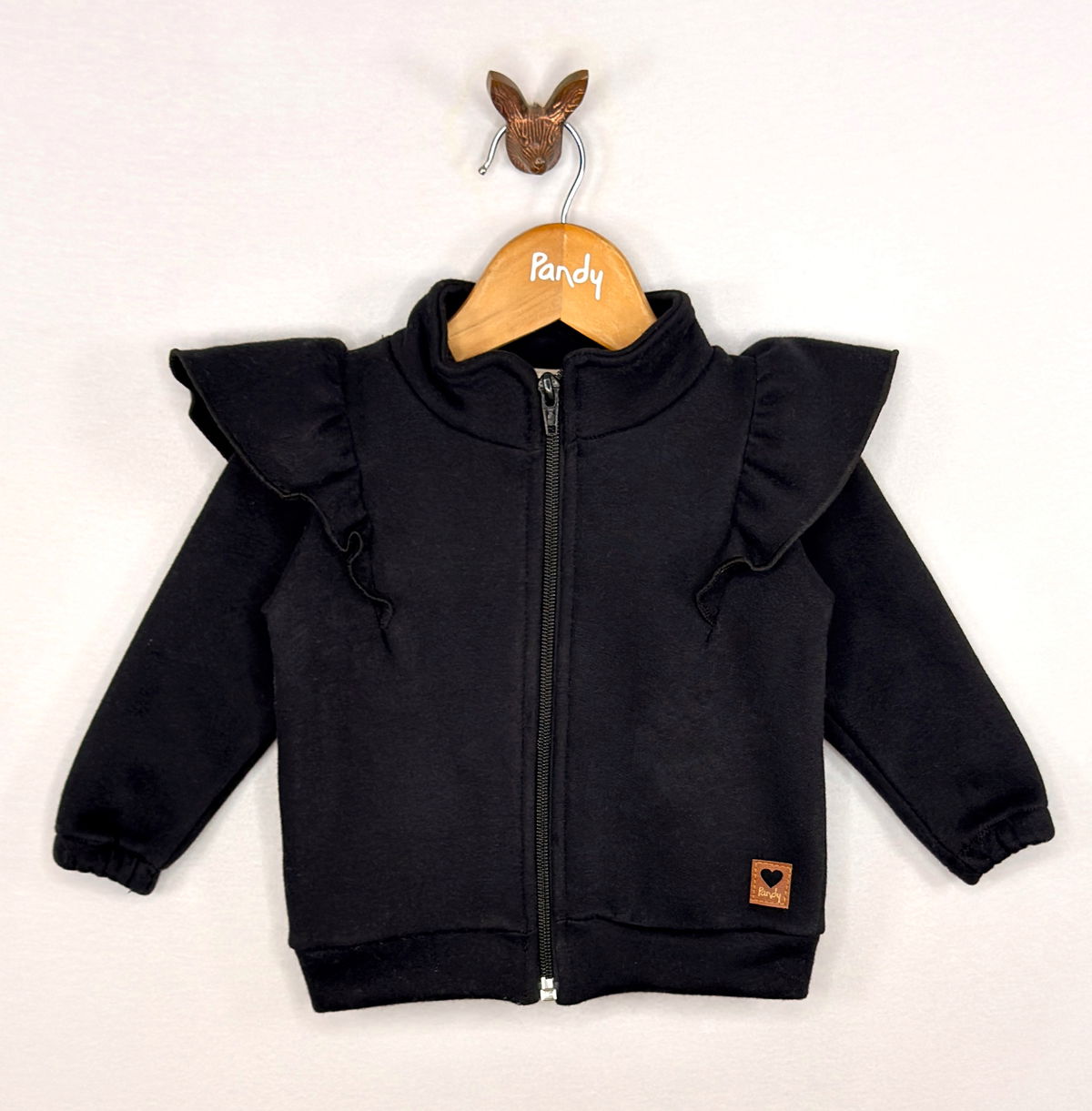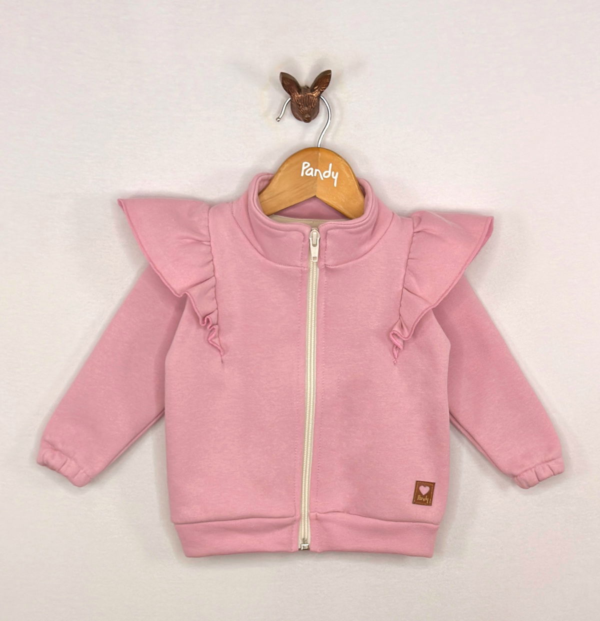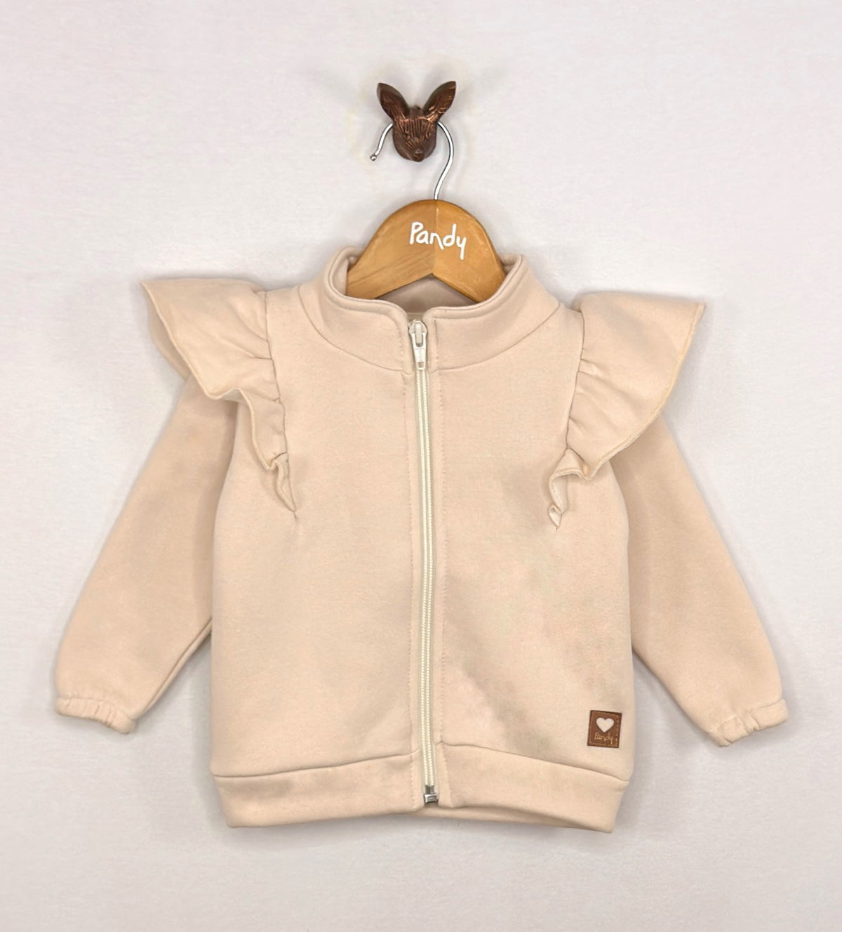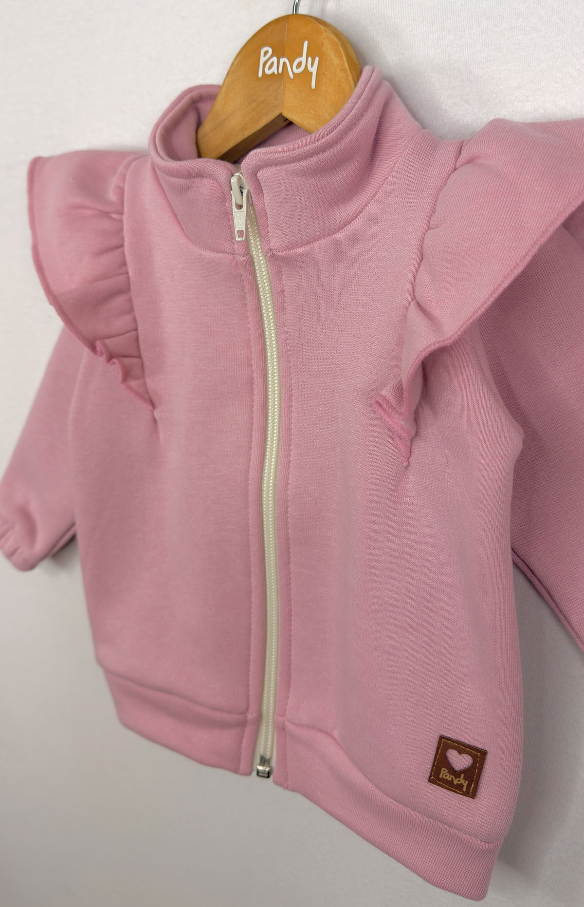 Campera Beba de frisa de algodón con volados en delantero.
