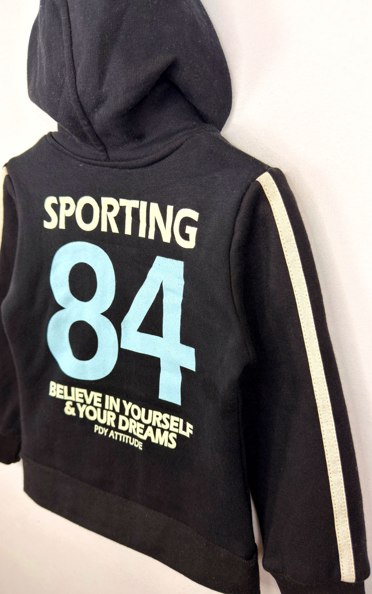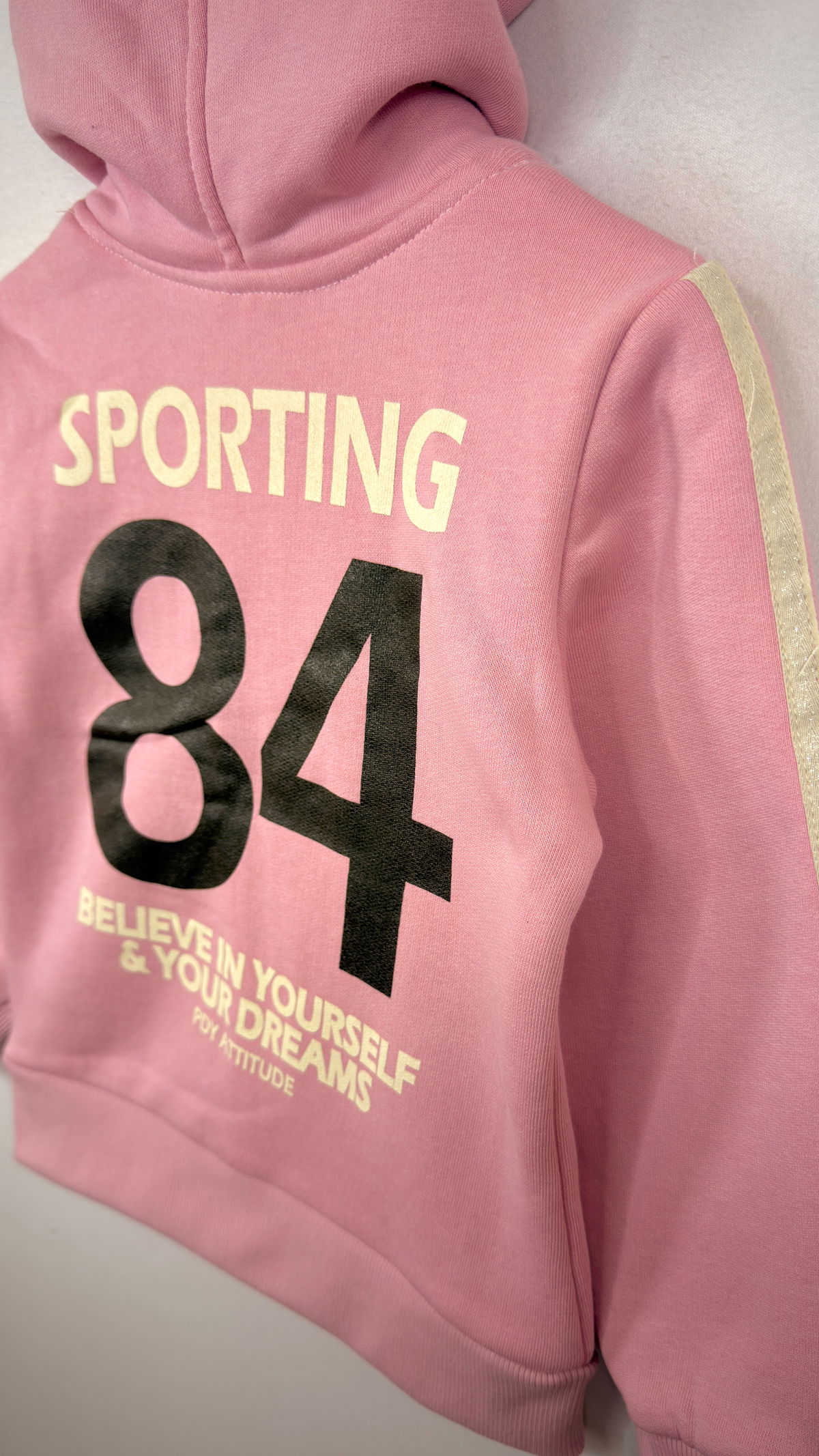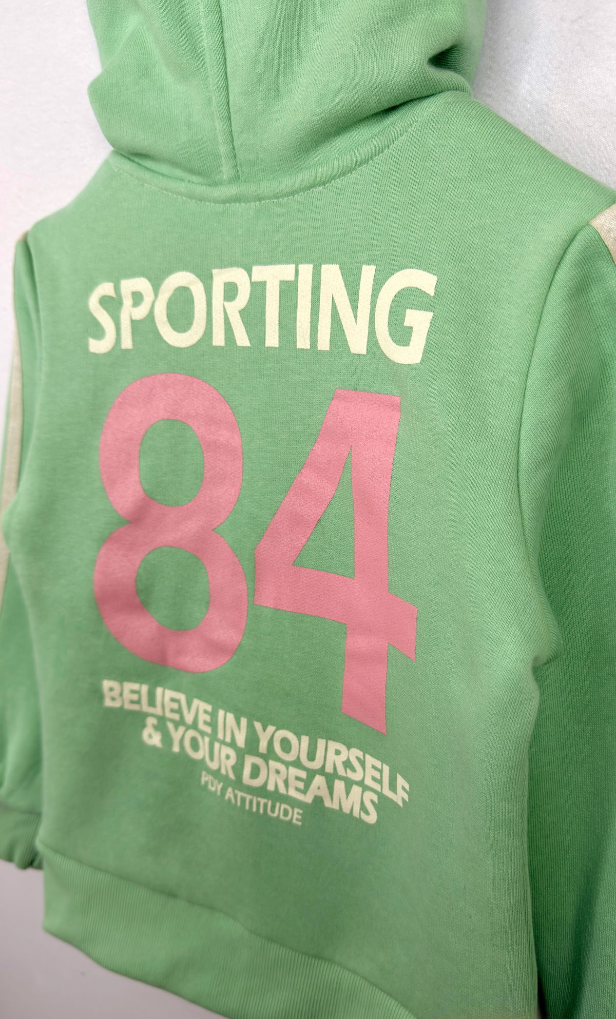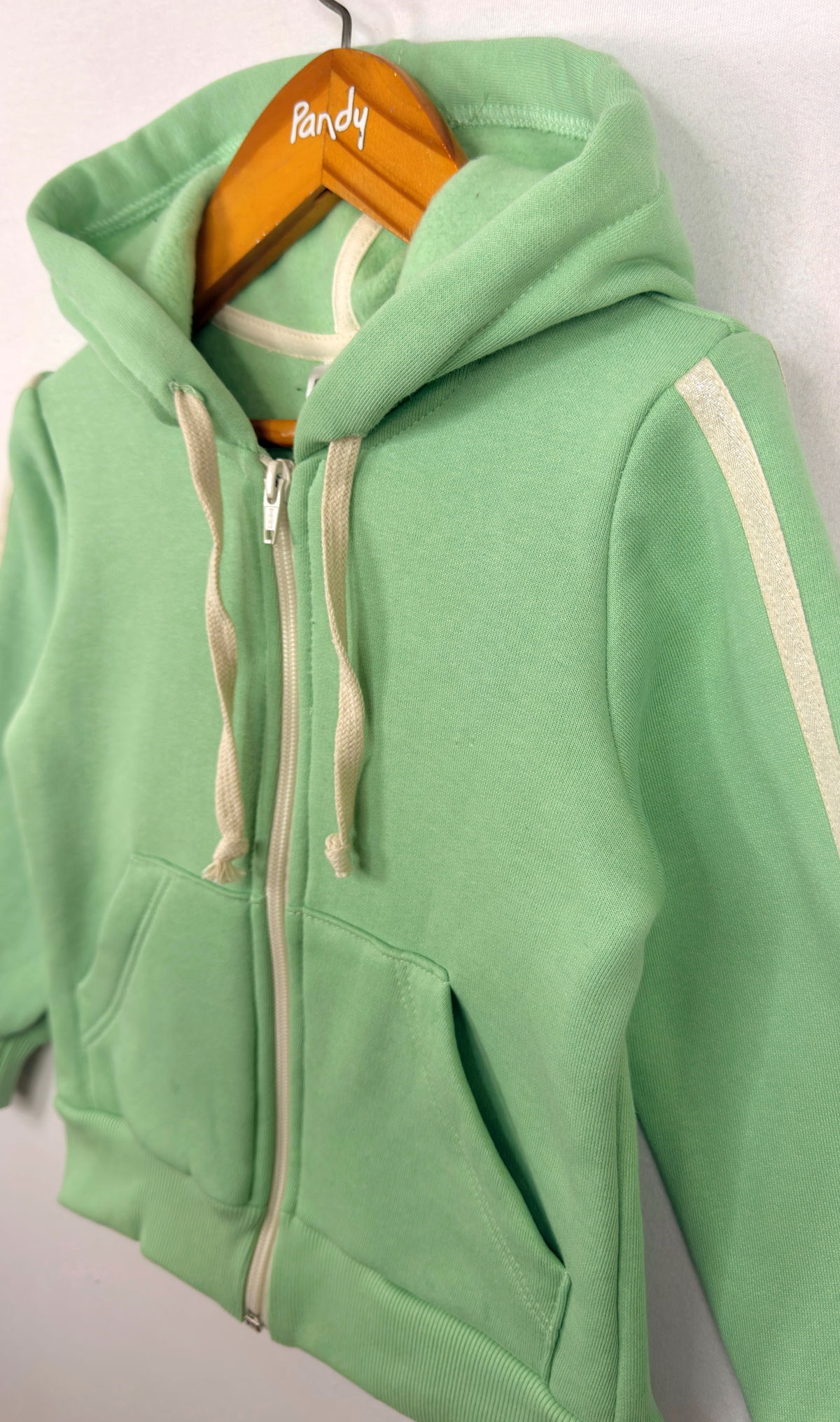Campera Nena de frisa 100% algodón, Con capucha y estampa en espalda.