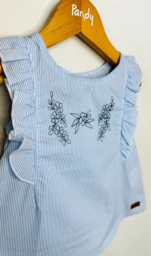 Vestido Beba poplin rayado con volado y estampa - 21771