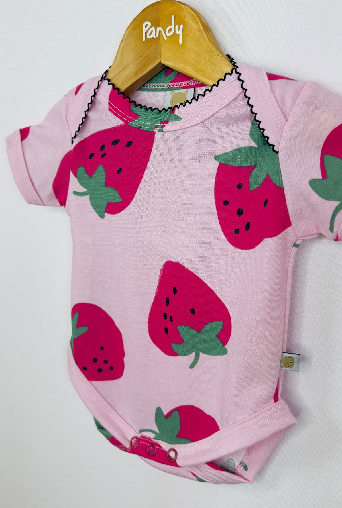 Body minimo manga corta cuello americano con picot, de jersey 100% algodón estampado.
