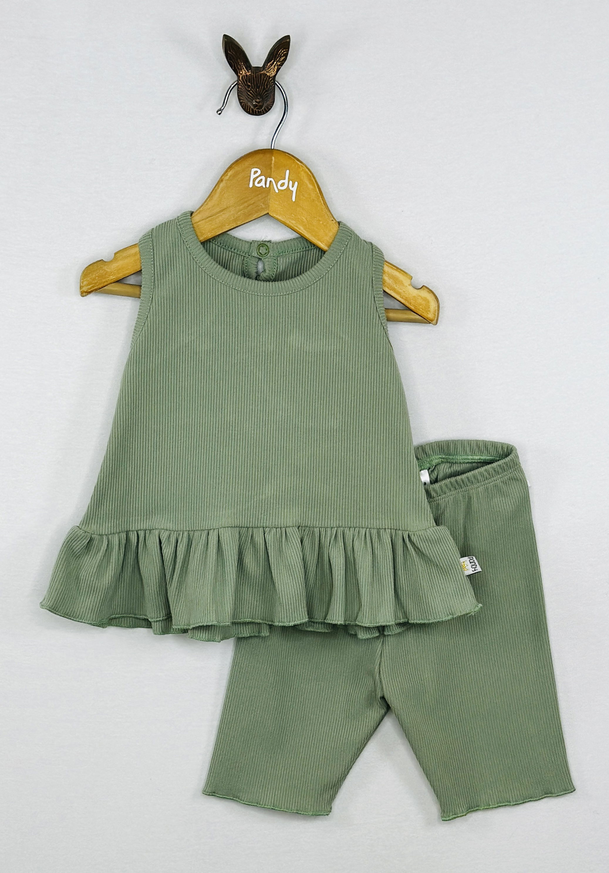 Conjunto beba morley listo, Remera con volado y calza biker.