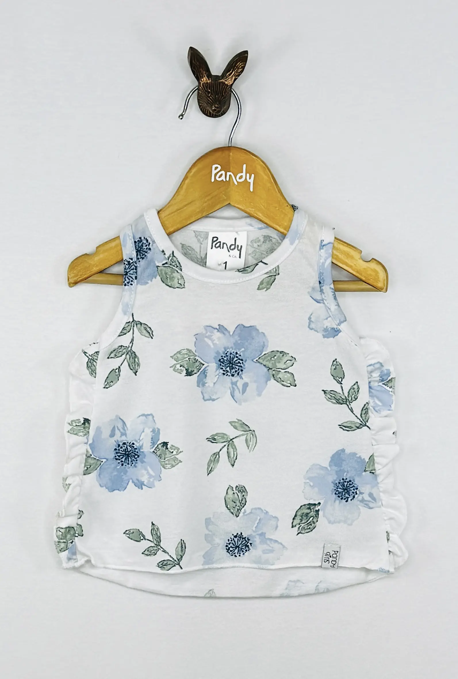 Musculosa beba Jersey estampado 100% algodon. Con voladitos laterales