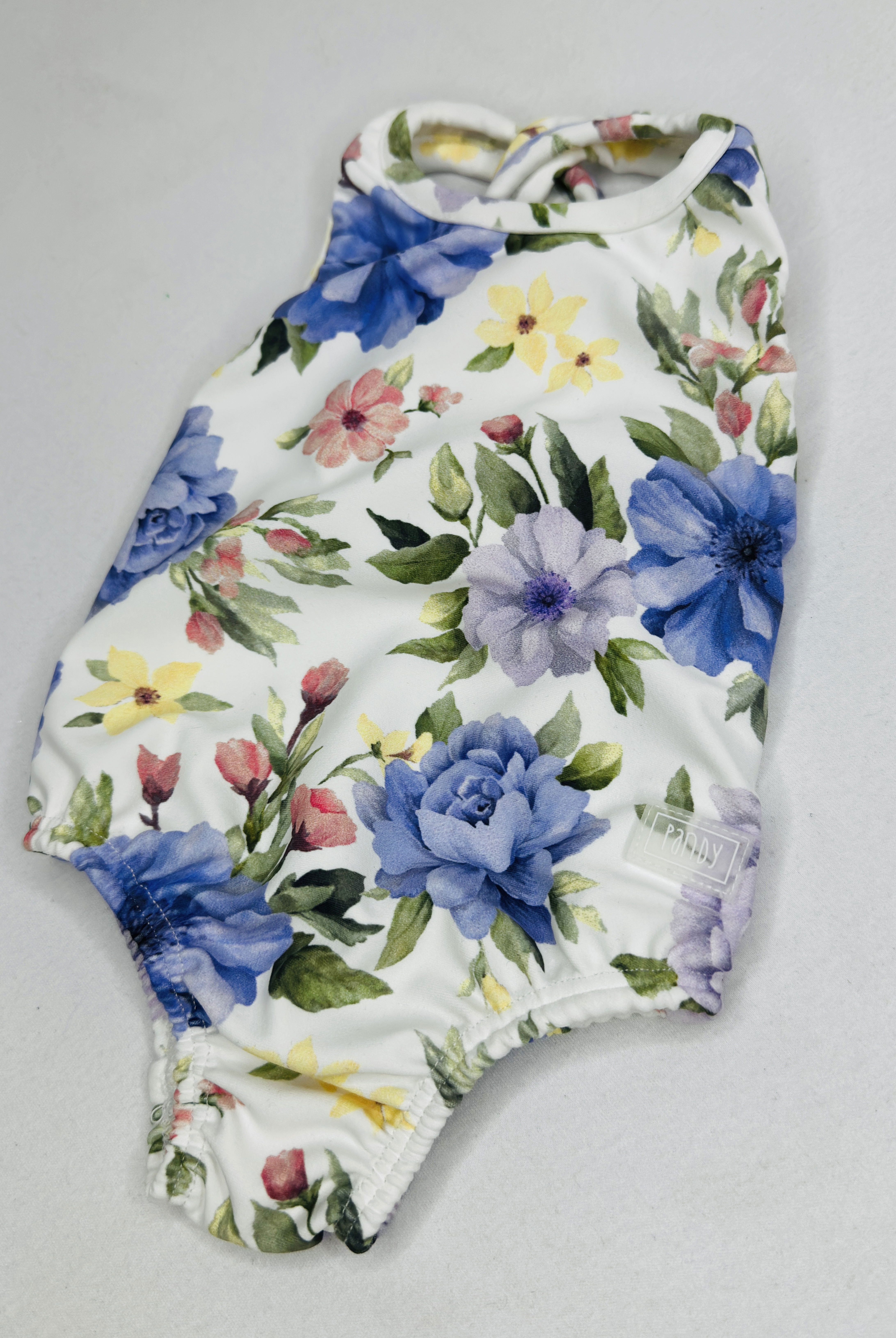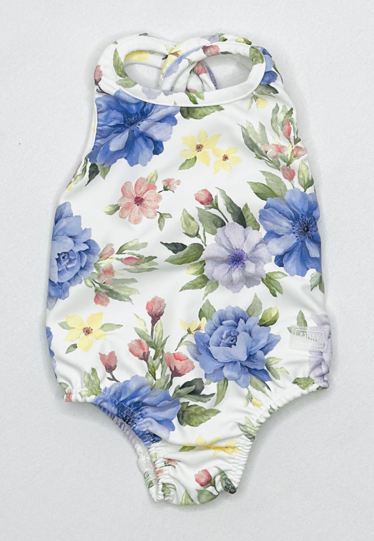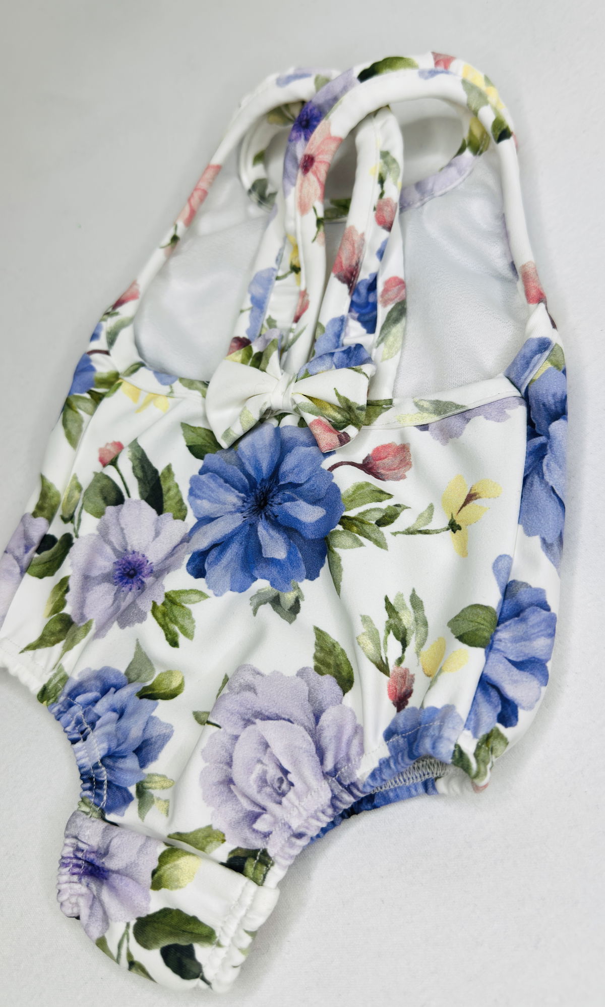 Malla Entera de Beba, tricot estampado con proteccion UV+50. con moño en espalda y delantero forrado.