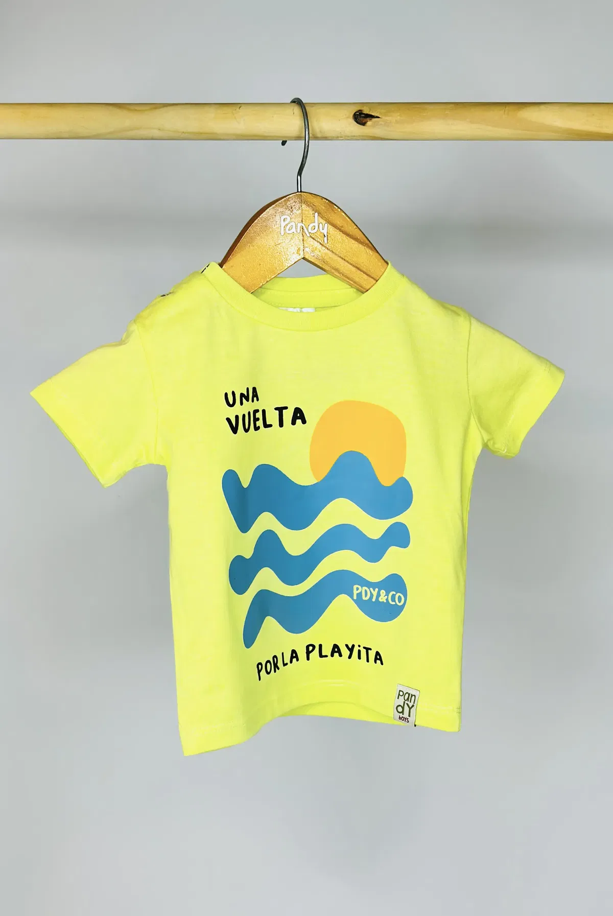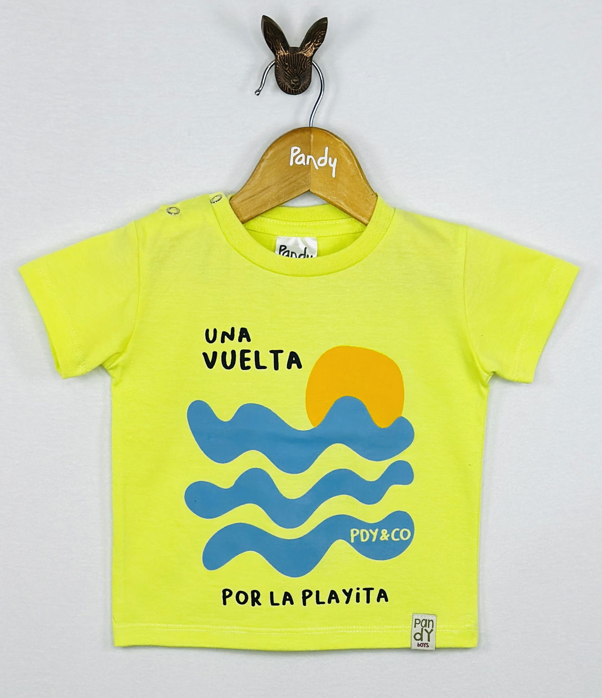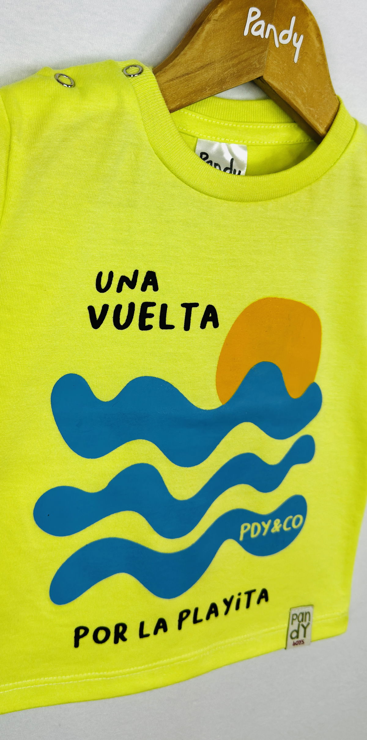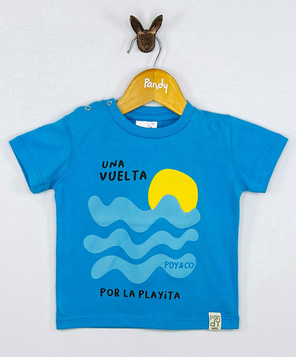 Remera Bebe jersey liso 100% algodón con estampa en delantero y broches en hombro.