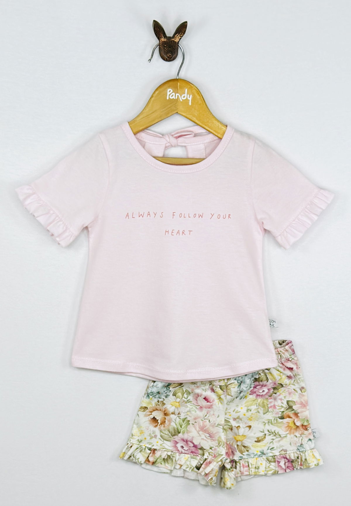 Conjunto de Beba short de jersey estampado y remera de jersey 100% algodón con estampa.