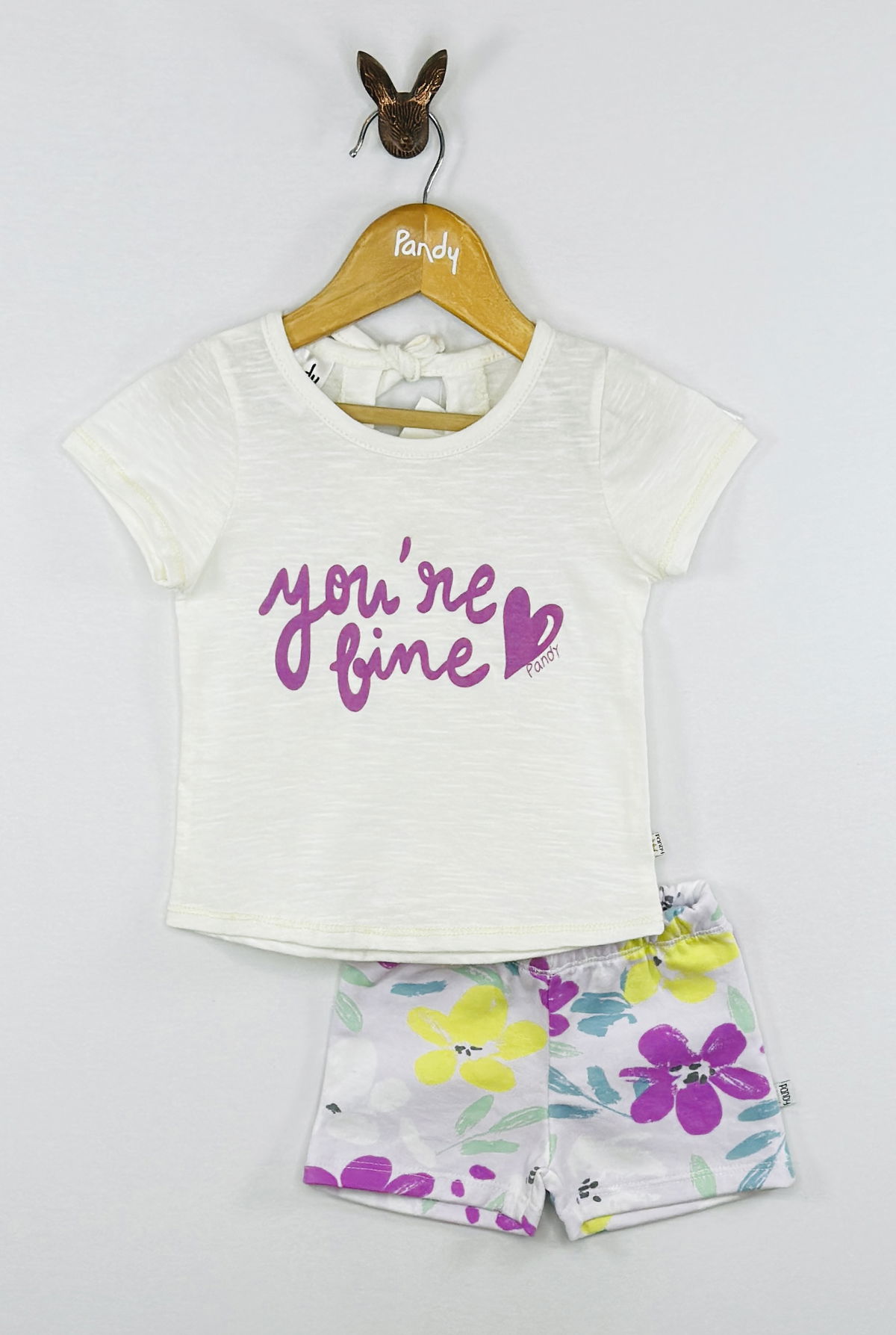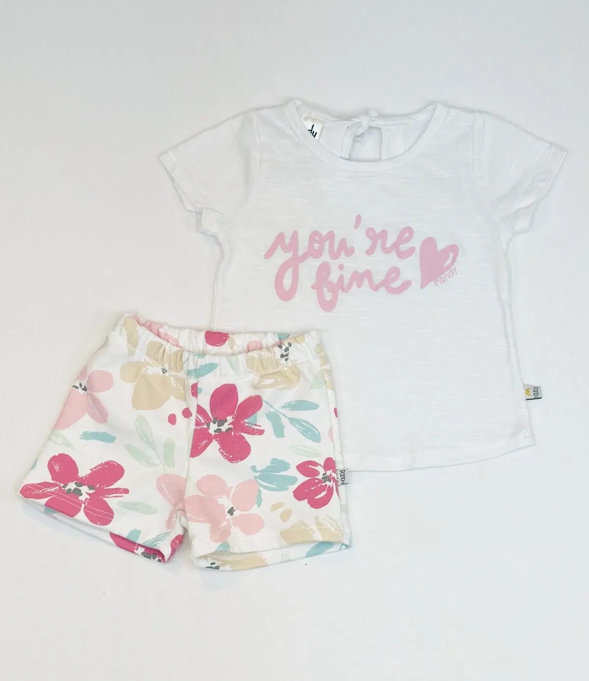 Conjunto de Beba short de rustico estampado y remera de jersey 100% algodón con estampa.