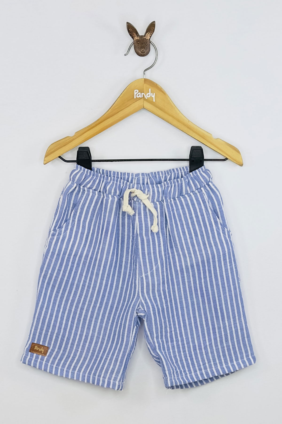 Bermuda Nene de Lino rayado, Con elástico en cintura y cordón para ajustar.