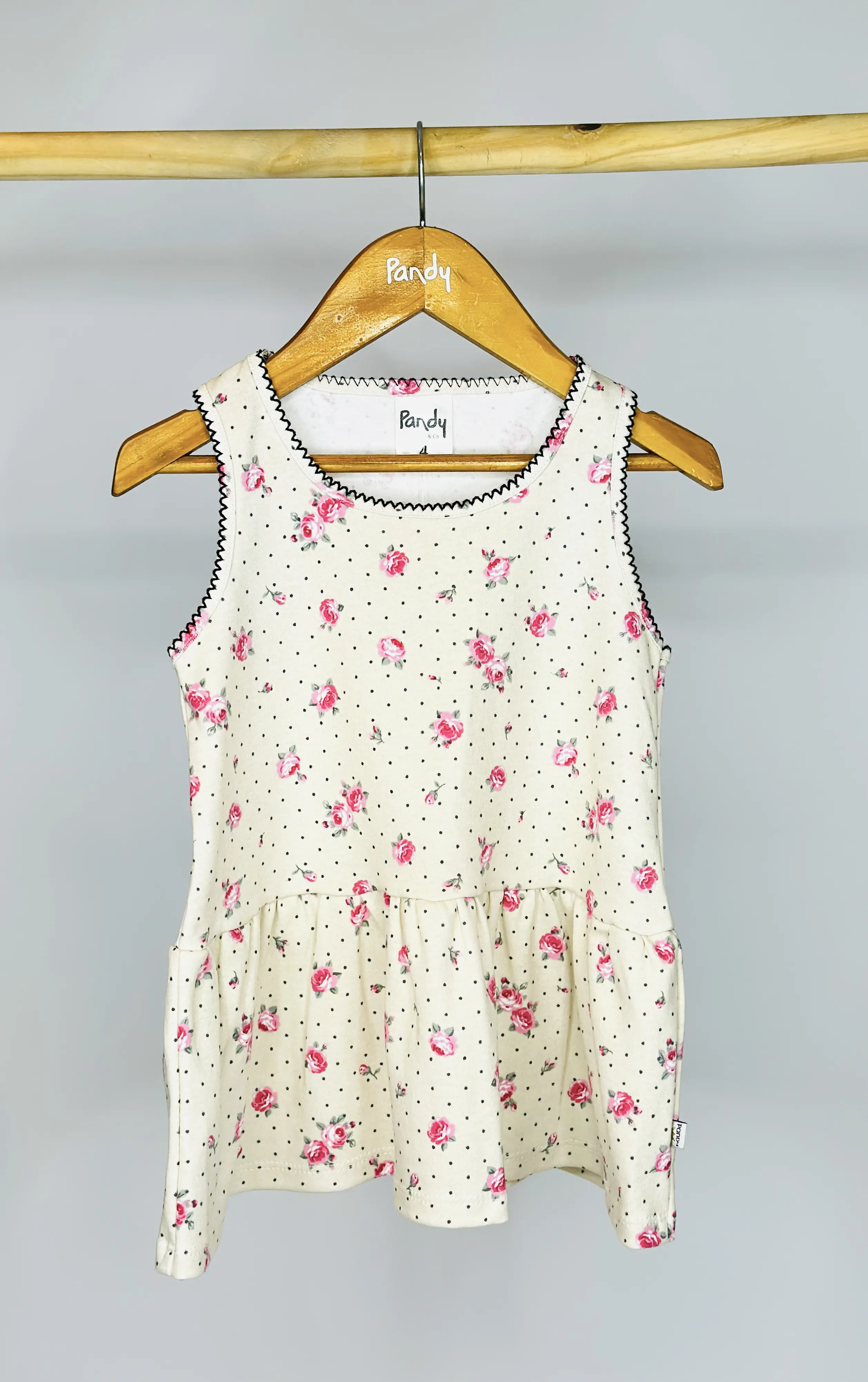 Remera Nena interlock estampado con volado, con picot en manga y cuello.
