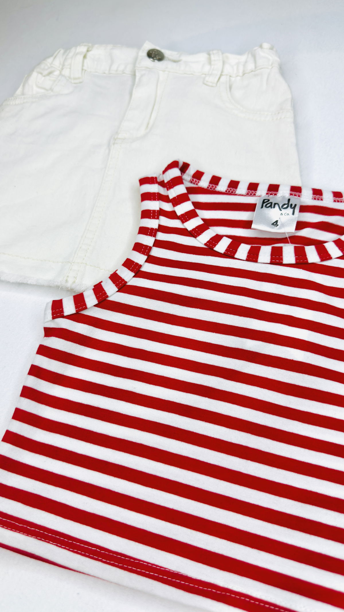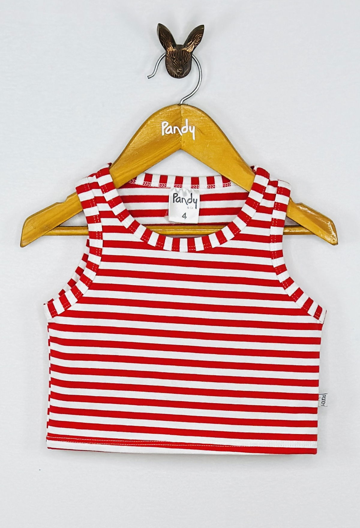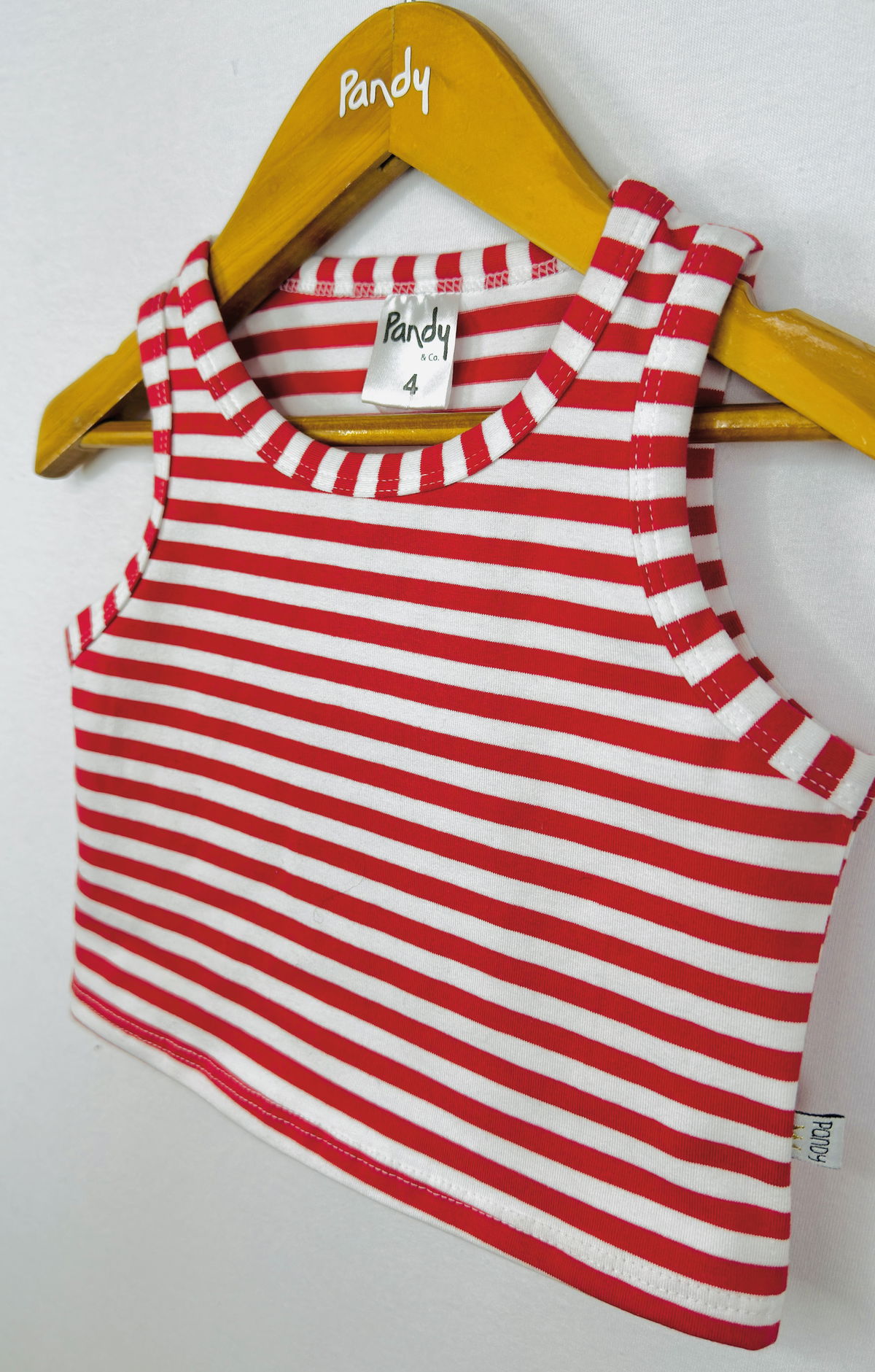 Musculosa Nena corta de algodón con elastano rayado tejido.